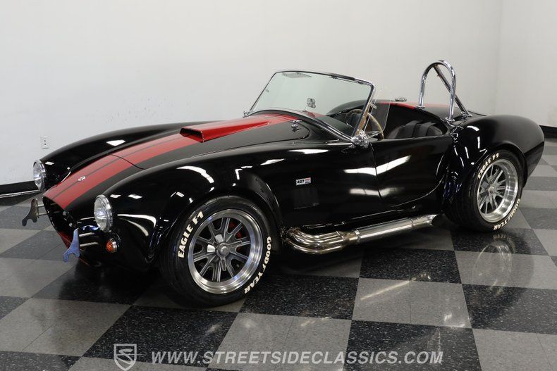 Under the reverse-hinged hood, we find a naturally aspirated 347 cubic-inch overhead valve stroker V-8 engine. Beneath the Cobra-embossed air cleaner and 347ci-embossed valve covers lies a single four-barrel carburetor that feeds that V-8 before sending spent exhaust gases through a set of long-tube headers connected to those incredible-sounding side pipes. That classic power is then sent through a tried-and-true Tremec TKO five-speed manual transmission, allowing you to experience this Cobra as it was meant to be, with the added benefit of an overdrive highway gear.