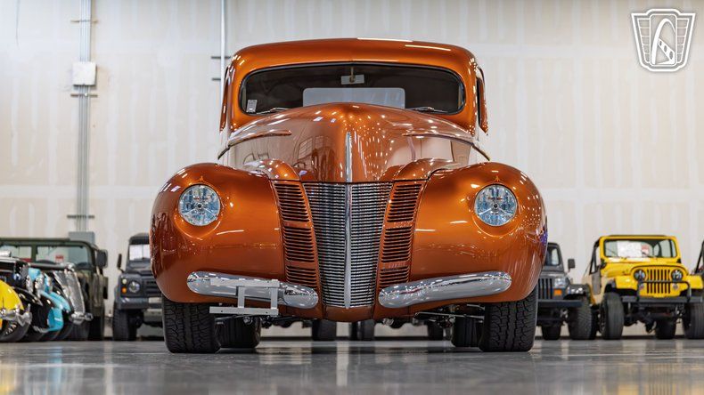 Gateway Classic Cars of San Antonio/Austin is excited to present this 1940 Ford Pickup. Finished in a striking orange exterior with a tan leather interior, this truck combines classic styling with extensive custom work. Power comes from a tuned port injection 350 cubic inch small block V8 engine paired with a 700R4 4-speed automatic transmission. The engine features headers, a smoothed block, and a smoothed transmission case. It is said to have been built from an original 1940 Ford truck cab, reflecting detailed craftsmanship throughout. The top is said to have been chopped 3.5 inches and includes a one-piece windshield and frenched headlights for a sleek, streamlined appearance. The truck is equipped with an independent front suspension, Corvette rear end, and disc brakes, providing modern drivability and precise control. It rides on Lazear billet wheels with the fluting removed, paired with performance tires that enhance both its stance and handling. Inside, the tan leather interior is complemented by a custom console with wood inlay, a custom dash, and a custom wood steering wheel, creating a cohesive and polished cabin. The bed is hand-formed from 20-gauge steel and is said to feature an African Satin wood floor with walnut inlay, adding a touch of elegance to the truck's functional design. Additional features include air conditioning, power steering, power locks, power windows, seatbelts, and a tilt steering wheel, combining modern convenience with classic appeal. This 1940 Ford Pickup represents a distinctive blend of vintage Ford style, thoughtful customization, and skilled craftsmanship. With its eye-catching exterior, refined interior, and carefully executed modifications, it stands as a striking example of classic American pickup design that is ready to be enjoyed both on display and on the road.