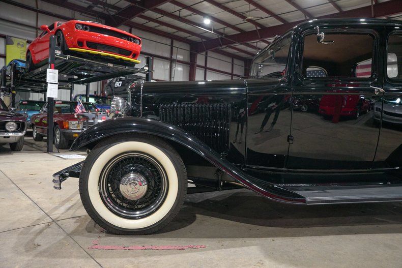GR Auto Gallery is excited to present this beautifully styled 1932 Ford Model B Coupe finished in classic black with just the right amount of chrome to highlight its timeless lines. Chrome bumpers, black wire wheels with chrome hub caps, and wide whitewall tires give this coupe an unmistakable pre-war hot rod presence. A full mounted spare rounds out the exterior, reinforcing the authentic early Ford look that has made these cars so collectible and admired for generations.