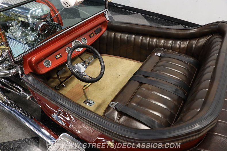 This 1927 Ford T-Bucket rides on a factory-style front-end suspension, while the aforementioned trick four-link setup is in the rear. A set of front discs does an exceptional job of scrubbing off speed of this featherweight street fighter. When you think of a true hot rod, a modified T-Bucket is the car that sets the standard for the industry. So, if you want to find out why so many people have fallen in love with cars like this, then don't wait another second. Call today! Be sure to ask about our services offered; Financing, Vehicle Protection Plan, Insurance, and Transportation to your driveway!