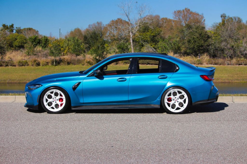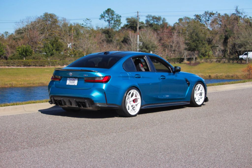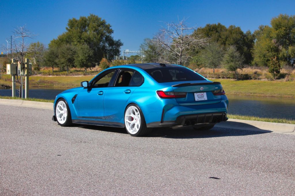 This 2023 BMW M3 is an exceptionally rare and highly specified performance sedan finished in BMW Individual Atlantic Blue believed to be 1 of only 2 produced in this color combination. Paired with a striking red interior and a 6-speed manual transmission, this M3 delivers the kind of exclusivity and driver engagement that is becoming increasingly rare in todays performance market. From the moment you see it, this car commands attention. The Atlantic Blue paint is deep, vibrant, and unmistakable, especially when contrasted against the bold red interior. It is further enhanced by a full carbon fiber exterior package that adds both aggressive styling and functional performance appeal. Under the hood, this G80 has been professionally upgraded with full bolt-ons and a custom tune. The car has been dynoed at over 700 horsepower, transforming an already capable M3 into a true high-performance machine. Power delivery is immediate and forceful yet refined exactly what you would expect from a properly engineered BMW build. The 6-speed manual transmission makes this car even more special. In an era dominated by automatics, this manual M3 delivers a pure, connected driving experience that enthusiasts actively seek out. Shifts are precise, the clutch engagement is strong, and the overall driving feel is immersive and rewarding. The car rides on premium HRE forged wheels that complement the aggressive stance and performance focus. For buyers who prefer a more factory look, the original wheels can be included with the car for a reduced price. Highlights include: 2023 BMW G80 M3 BMW Individual Atlantic Blue believed 1 of 2 produced Red interior 6-speed manual transmission Full carbon fiber exterior package Full bolt-on modifications Professionally tuned Dynoed at over 700 horsepower HRE forged wheels Original wheels available for less money This is not a standard M3. It is a rare, manual-transmission, Individual-color example with serious power and premium upgrades. The combination of exclusivity, manual gearbox, and 700+ horsepower makes this car stand out even among high-performance BMW builds. If you are looking for something truly special rare color, rare spec, serious power, and true driver engagement this 2023 G80 M3 delivers at every level. While we do our best to provide the highest quality muscle cars with an honest and reliable description and realize the importance of transparency when selling vehicles. That being said, we have not built, modified, changed or personally owned this vehicle. Whether this vehicle is consigned or owned by Past & Present Motor Cars we do not know the vehicles complete history since new. We want to be clear and try to answer any questions our customers might have prior to purchasing. Additionally, we not only welcome but we encourage 3rd party independent inspections. Please inquire prior to purchase to make sure the advertised vehicle has not already been sold. We list our vehicles on multiple websites and a vehicle can sell at any time. If a customer chooses to purchase sight unseen (many of our customers choose this option) the customer accepts the vehicle AS IS and WHERE IS and understands we cannot address concerns after purchase. For this reason, it's important all concerns are addressed prior to purchase. We make every effort to present accurate and reliable information, but use of this information is voluntary, and should only be deemed reliable after an independent review of its accuracy, completeness, and timeliness. It is the sole responsibility of the customer to verify the existence of options, accessories and the vehicle condition before time of sale. Financing is Available with low rates and Vehicle Shipping is available from our Showroom to your Garage. A Classic Car Warranty is Available for Purchase from a 3rd Party. Please speak to our Sales Associate or Company Representative for more information. Our team is working and available anytime by Phone or Text for your convenience at 407-559-7759. Thank you for your interest!