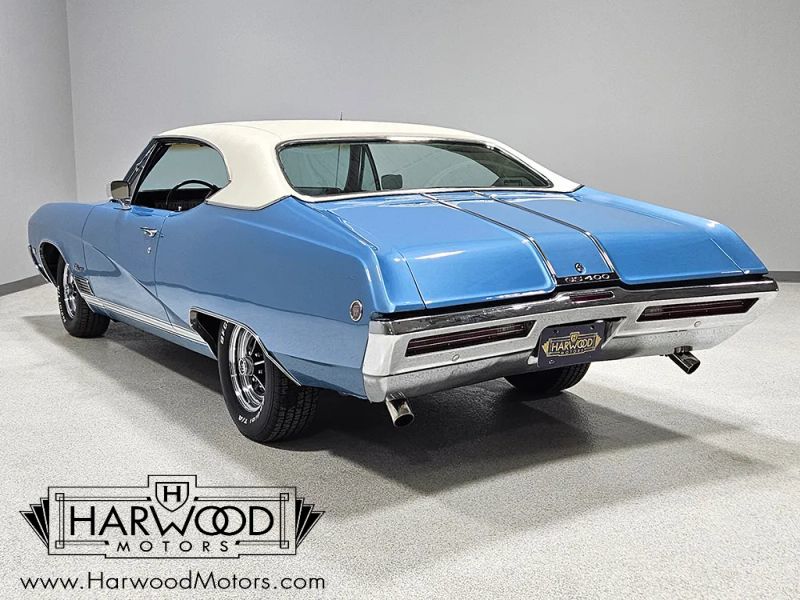 Were not sure why, but Buicks never seem to get the same respect as their Chevy and Pontiac siblings. The good news is that you can own a car like this 1968 Buick GS 400 for far less cash than a comparable Chevelle or GTO, and it delivers the same muscle car experience. In fact, wed argue that the Buick is a better car, with superior build quality and a more substantial feel out on the road. And when theyre as pretty as this code D Blue Mist GS, the argument is pretty easy to make. The restoration was probably finished in the early 2000s but we dont have any documentation on it. However, the super straight bodywork looks awesome and we dont see any evidence of botched repairs or substandard workmanship. Panel gaps are even, that crease running from nose to tail is crisp, and theres a nice shine to the paint. Experts will quickly spot that this car wears a 1969 GS hood, which includes functional Ram Air, but thats a subtle distinction that probably improves performance. Theres also a nice white vinyl top that fits well and doesnt show any signs of rust issues underneath. The chrome and stainless trim is excellent, it wears correct GS badges, and someone has cleverly integrated a third brake light into the rear bumper-cool!