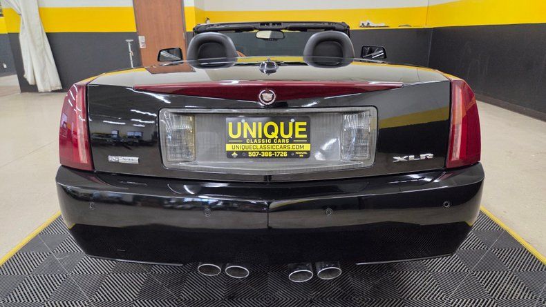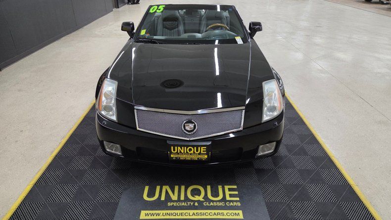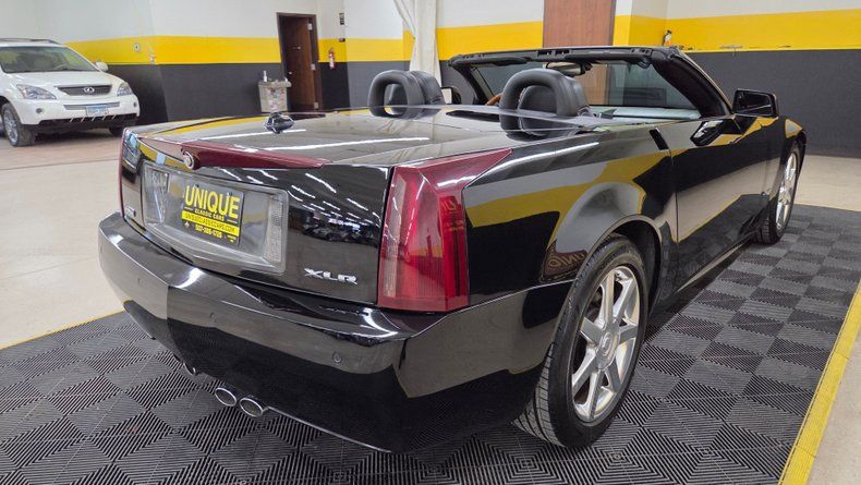 2005 Cadillac XLR retractable hardtop convertible. Clean Carfax record, and low mileage. 4.6-liter dual overhead cam V8 engine paired with an automatic transmission featuring overdrive. The car is equipped with modern amenities such as power steering, power brakes, air conditioning, heated leather seats, power windows and locks, electronic dual climate control, and a premium stereo system with navigation capabilities. The exterior is black with polished wheels, and maintains a shiny, reflective finish with only minor imperfections. The retractable hardtop operates smoothly, providing the versatility of both coupe and convertible driving experiences. Four-wheel disc brakes, leather bucket seats, a heads-up display, steering wheel controls, and a well-maintained dashboard. On the road the smooth ride, responsive brakes, and performance aligned with its Corvette roots.