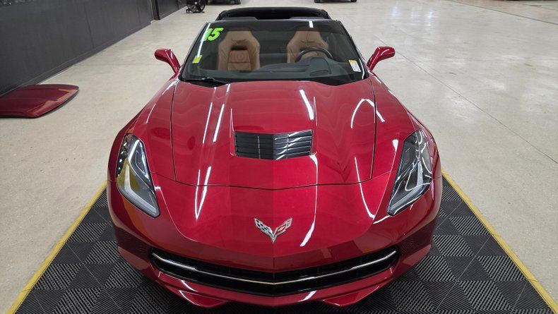 2015 Chevrolet Corvette Stingray Coupe with 21,635 miles, finished in Crystal Red Tint Coat and Kalahari leather interior.