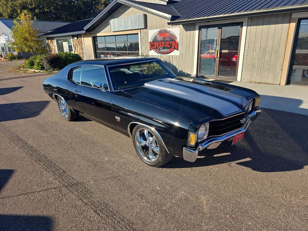 * COMING SOON * ASK ABOUT FREE SHIPPING IN LOWER 48 STATES AND FINANCING * ON-FRAME RESTORATION , COMING SOON * 1972 CHEVROLET CHEVELLE SS HARDTOP SPORT COUPE * FRESH 454 V8 ENGINE, NEW ELDERBROCK 4BBL CARB / ALUMNUN INTAKE , ENGINE CHROME KIT * HEI IGNITION * HEADERS WITH 3 INCH PERFORMANCE DUAL EXHAUST * 4-SPEED MANUAL TRANSMISSION * * 12 BOLT ,BELIEVED TO BE 3.73 POSI REAR END * INSTALLING NOW NEW VINTAGE AIR CONDITIONING * POWER STEERING *ADDED NEW POWER DISC BRAKES FRONT, REAR DRUMS * NEW SUSPENSION TIE RODS, BALL JOINTS, UPDATED WITH REAR QA1 CONTROL ARMS , NEW AIR SHOCKS * NEW SS STEERING WHEEL * NEW DASH *DASH CLUSTER WITH GAUGE AND TACH * *JUST COMPLETED , NEW PAINT,BASE COAT, CLEAR COAT TUXEDO BLACK PAINT WITH SILVER SS BADGING STRIPS , NEW STEEL 2 INCH COWL HOOD * * NEW BLACK UPHOLSTERY INTERIOR, DOOR PANEL, CARPET, HEADLINER, BUCKET SEATS UPHOLSTERY WITH FOAM , *NEW WEATHERSTRIPPING, BODY CHROME * SS BAGGING * UPDATE AUTO SOUND AM/ FM STEREO *CHROME RIDLER WHEEL 18' FRONT, REAR W/ NEW 245/45R 18 TIRES *MORE PICTURES AND VIDEO COMING ONCE THRU OUR SHOP * ENGINE BLOCK # 14015445* ANOTHER ONE OF OUR ON-FRAME RESTORATIONS* COMING SOON