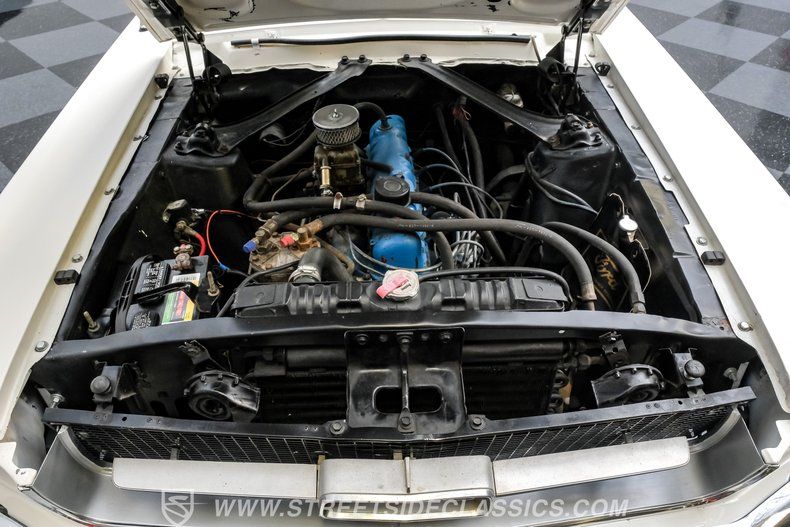 Under the hood, you'll find a correct T-Code 200ci inline 6-cylinder engine with a single-barrel carburetor and factory-style intake and exhaust manifolds. The engine bay maintains a stock appearance, enhanced by an R134-A adapted A/C compressor. Paired with a 3-speed manual transmission, this Mustang offers a driving experience that's both engaging and authentic. The car rides on factory-style suspension delivering a smooth and confident ride.