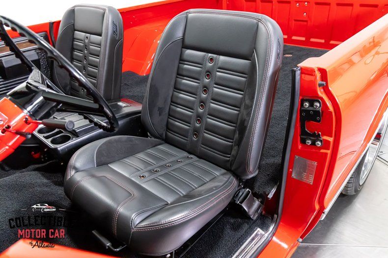 This Blazer was restored with a no-shortcuts mindset-starting with a frame-off restoration and finished in a glossy, bold red that absolutely pops under the lights. The body lines are crisp, the trim is clean, and the overall look is modernized without losing the iconic '71 K5 attitude. Up front, it wears a clean Chevrolet grille and bumper combo with modern headlight upgrades and bright amber lighting for a fresh, updated appearance while keeping the classic face intact.
