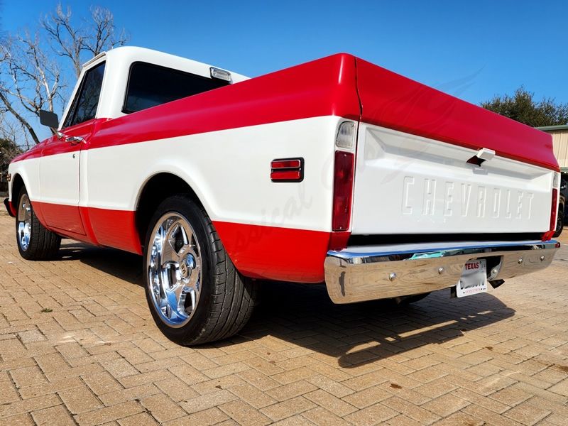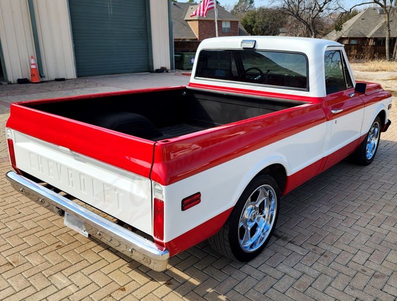 Classic pickups have always had a following but in recent years the trucks of the 60's, 70's, and 80's have really grown in popularity. Fords have their fans but the Chevy C10s have really been the focus. The C10 was introduced in 1960 and included both the "Action Line" series and the "Rounded Line (Square Body)" series. This cool '68 belongs to the 2nd generation and the "C" in C10 denotes it as a 2 wheel drive model. A lot of the mechanical components for this gen was carried over from the previous but the bodies were largely redesigned to improve their capability of being multi purpose vehicles. Then in 1971 they underwent a mid cycle revision where they received a new front end that incorporated the eggcrate grill design. This 1972 was the final year for this generation and this one has been fully redone in a more pro touring restomod style. It has a ton to offer mechanically on top of the already gorgeous exterior. The body is all very straight, very solid, and all rust free. It is painted in a beautiful Red and White combination that looks great. The original style trim has been shaved off which is a subtle modification but gives it a much more sleek look. The glass throughout is all damage free and has been tinted. The front and rear bumpers are nicely chromed and the grill/front end stainless all looks great. Chrome mirrors are in place on both sides as well as chrome windshield wiper arms. The truck sits on a set of new 20 inch US Mag wheels with Nitto (255/45ZR20) tires and has an awesome stance.