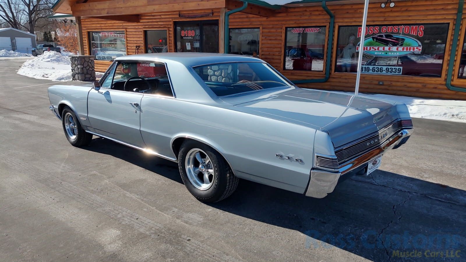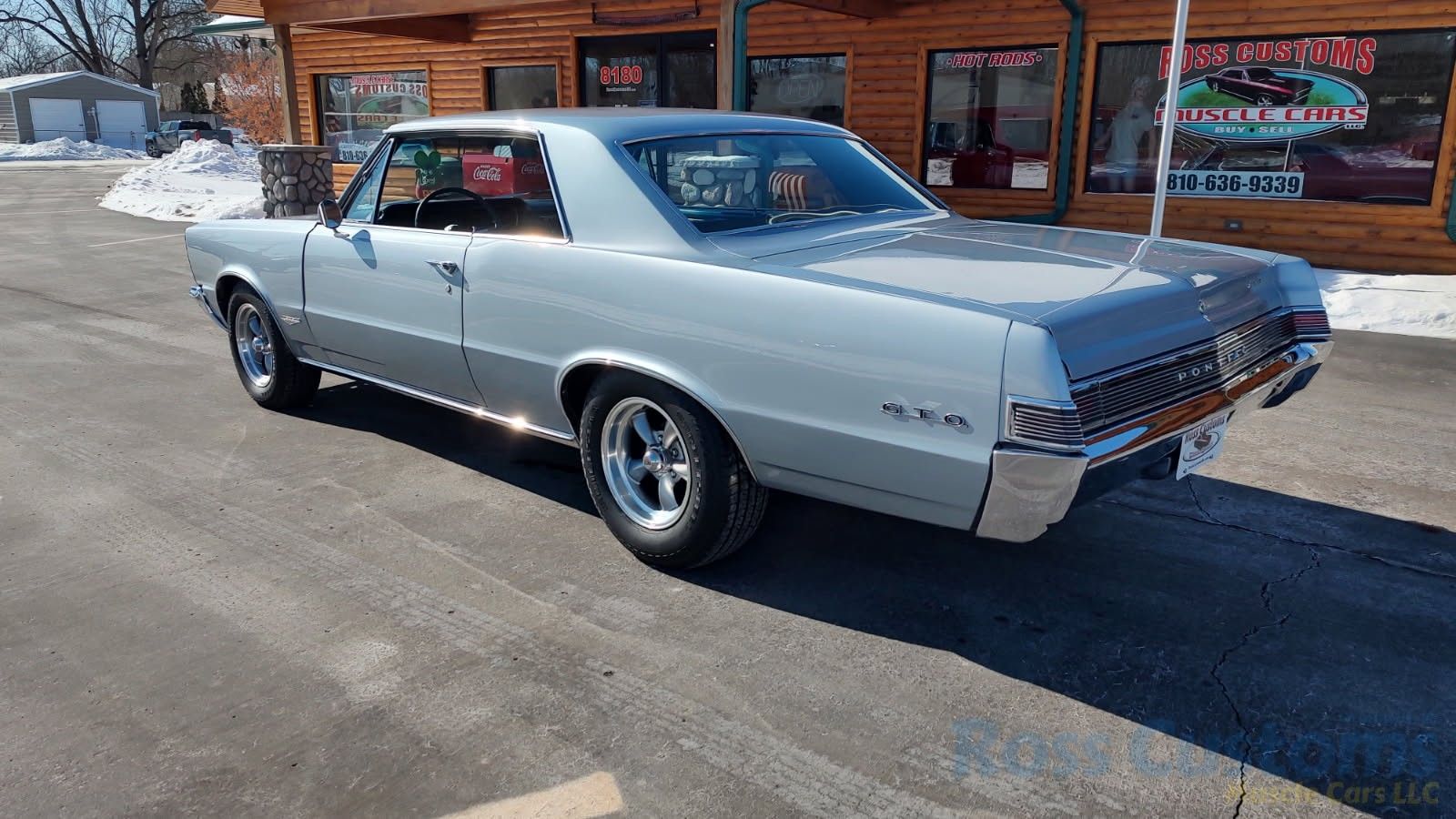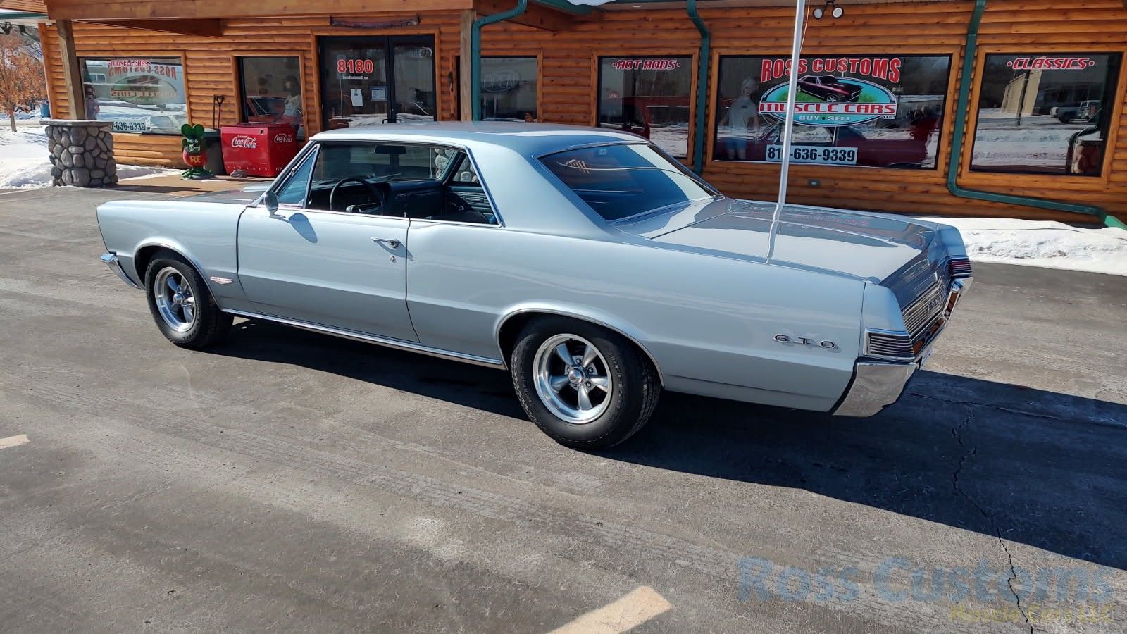 This is a very nice clean all original panel 65 GTO that has had the same owner since 70's, came out of Arizona, has had 1 very nice repaint its original (Code W) Bluemist Slate, basecoat clearcoat, sanded and wheeled smooth, has had new tinted windshield; all other glass is factory original softray tint in excellent condition, weather stripping and window felts also have been replaced, retains all original stainless window moldings, vent windows, drip rail trim and upper door trim in very good condition, side view mirror and door handles have been replaced, original grills and headlight bezels in excellent condition, original front bumper in very good condition - shows a little age, original wheel well and rocker moldings in excellent condition, original taillight bezels and tail panel applique in excellent condition, re-chromed rear bumper.