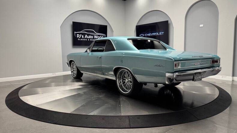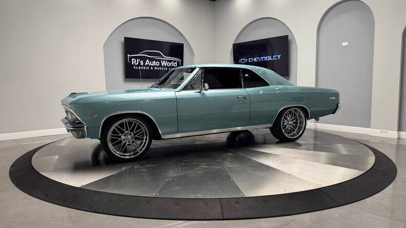 PJ's Auto World is pleased to offer this 1966 Chevrolet Chevelle for Sale. Correct EC Suffix Code L-30 327 275 horsepower engine, Quadrajet 4-barrel carburetor, high-output alternator, power steering, detailed engine compartment, dual exhaust, Powerglide automatic transmission, 20 US Mag Santa Cruz U140 chrome wheels, Artesian Turquoise exterior, chrome driver's mirror, tinted glass, black bucket seat interior, center console with floor shifter, powerful Retrosound Bluetooth Multimedia radio with amp and subs. If you're looking for a reliable toy that is absolutely stunning, let your search stop here. Call us today and get all the details on this amazing car! With over 45 years of dedicated service to the Collector Car Community, our team is eager to answer any questions you may have. Finance options available and worldwide shipping can easily be arranged. Interesting trade-ins will also be considered.