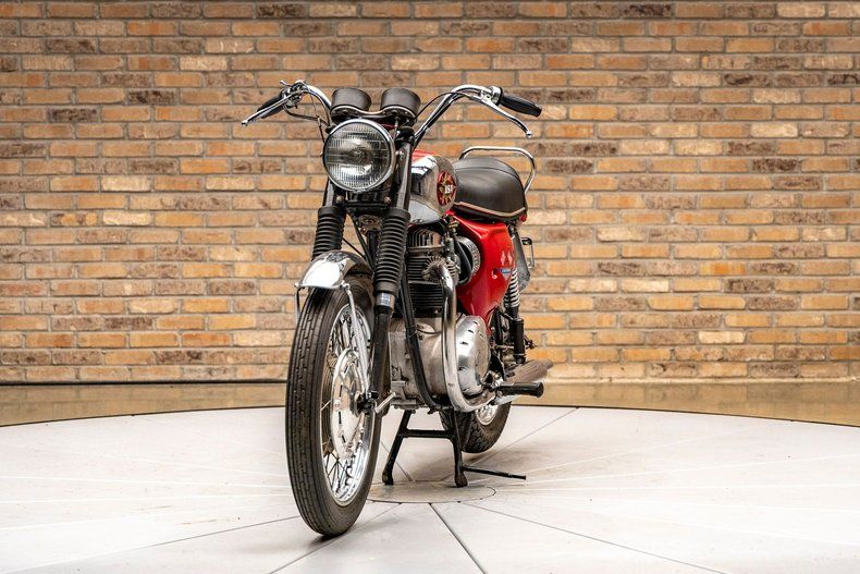 Classic British styling shines through in the upright riding position, maroon paint with chrome accents, and the B. S.A. tank badge/sticker. With a right-foot shift like a true British bloke, this Lightning stays true to its original configuration and riding experience. The frame and suspension are unrestored but in very nice condition, and the original dual single-pipe exhaust completes the factory-correct presentation.