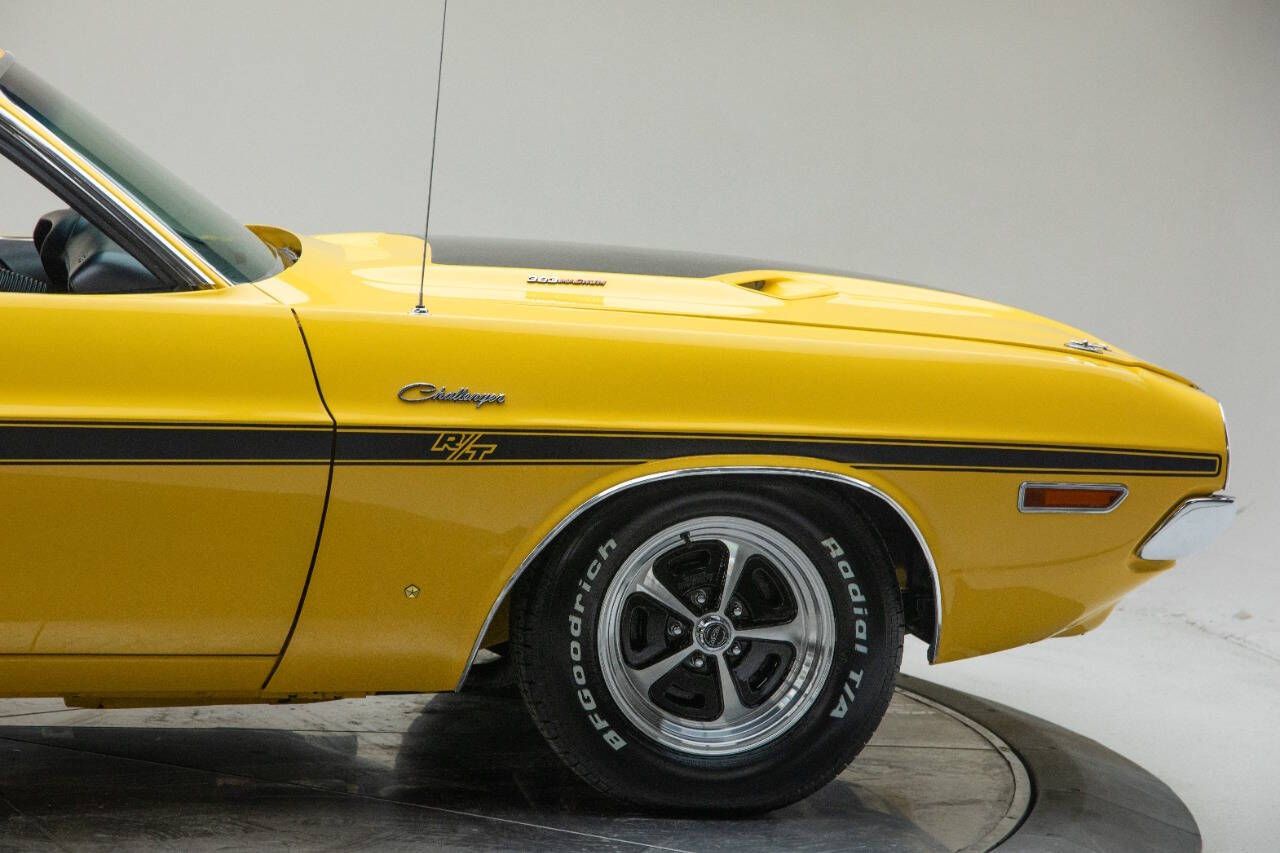 1970 Challenger R/T Numbers matching 383 4 speed manual transmission with pistol grip shifter Rotisserie restoration, underside painted yellow Duffy's presents this stunning 1970 Dodge Challenger R/T, a true R/T, an icon of automotive history with build sheet and window sticker. Dressed in a High Impact Top Banana Yellow exterior with R/T black stripes this classic beauty commands attention and admiration wherever it goes. The bold color is complemented by a pristine black vinyl top and black interior creating a striking contrast that exudes both luxury and performance. This Challenger is not just about looks; it's a powerhouse under the hood boasting a formidable number matching 383 V8 engine paired with a 4-speed manual transmission with pistol grip shifter. This combination delivers an exhilarating driving experience that will satisfy even the most discerning muscle car enthusiast. The cabin is equipped with a factory Rally dash with 150MPH speedometer showing miles, a factory 7000 RPM tachometer and full complement of gauges and factory AM/FM radio (non-working) It comes fitted with New BF Goodrich performance radial white letter tires on Chrysler road wheels that offer exceptional grip and handling allowing you to fully exploit the power of the 383 V8 engine. Manly manual drum brakes and manual steering like a muscle car should be and feel. This 1970 Dodge Challenger is more than just a car: it's a statement of style power and heritage. It represents a time when American muscle cars ruled the roads and it continues to turn heads and win hearts today. Don't miss the opportunity to own a piece of automotive history that combines breathtaking aesthetics with unmatched performance. This yellow beauty with its black interior and powerful engine is ready to provide countless miles of thumbs up and driving pleasure and timeless appeal. VISIT US AT OUR SHOWROOM LOCATED AT 250 Classic car Ct SW Cedar Rapids, Iowa, 52404! Open 9-5 CST M-F. Financing available with classic cars are done with JJ Best Banc 1-800-USA-1965 with terms of 24-84 months. Shipping is available. Terms of Sale for all vehicles sold at Duffy's Classic Cars/ Jetset Auto LLC: We strongly encourage inspections before purchasing to avoid any misunderstandings or representations. All used vehicles should be assumed to have some degree of wear. No Vehicle is perfect for everyone. Despite our efforts to verify a vehicle's mechanical condition; we are not able to warranty a manufacturers workmanship or previous owners diligence in care or use. Duffy's Classic Cars/Jetset Auto LLC does sell all vehicles AS IS. We have described the above-mentioned vehicle to the best of our ability. However, with all pre-owned automobiles, the condition is subjective. Please be advised that no oral or written statements concerning any vehicle constitutes a representation or warranty of the condition of the said vehicle. We will not hold a vehicle for you without a $1000 non-refundable deposit. If you want the vehicle, give us a deposit to hold it for you. It holds the vehicle for 10 days. Credit card bank fee of 3.1% will be added to any credit card payments. Unless we have some documentation, we always sell classic cars as mileage exempt. That means we do not know the original miles. What we list in the ad is what the odometer currently reads or is based off rebuild information of the engine and or body/chassis. Odometers may have rolled over. Advertised price does not include Document Fee $179 paperwork fee / dealer handling fee. The Doc Fee will include a temporary tag for vehicle use. All sales are plus Sales tax, title, postage fee for in state purchases. No sales tax, license fees will be collected for out of state purchases. All sales are final with car being sold where is, as is.
