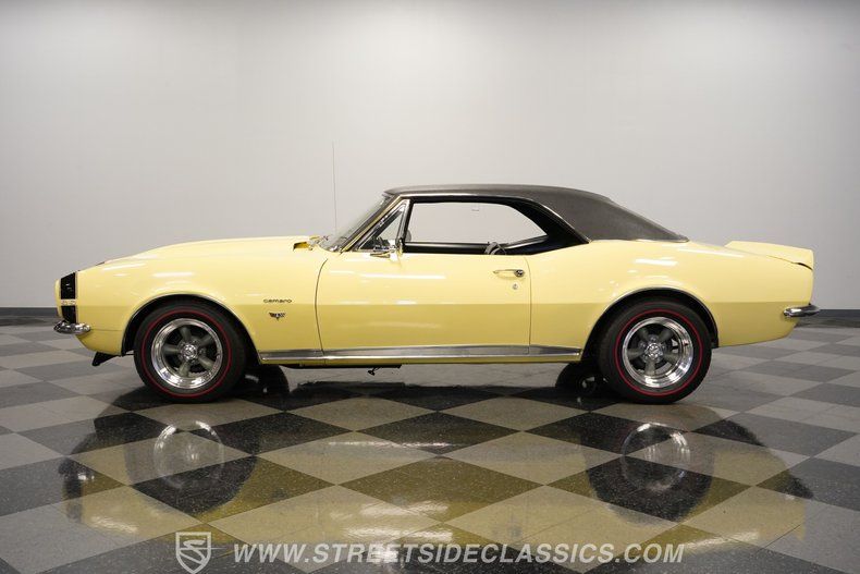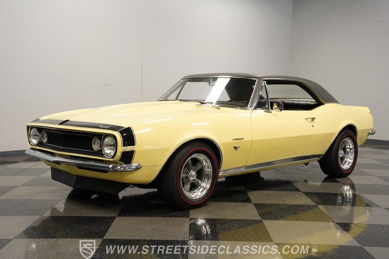 When it comes to muscle cars, there is nothing quite like a first-generation Camaro. Power, prestige, and pizazz begin to describe this beautiful 1967 Chevrolet Camaro SS 350 Tribute. Fully repainted in its original Butternut Yellow exterior paint, while its contrasting black nose stripe and vinyl hardtop complement its redline rubber and iconic American Racing wheels.