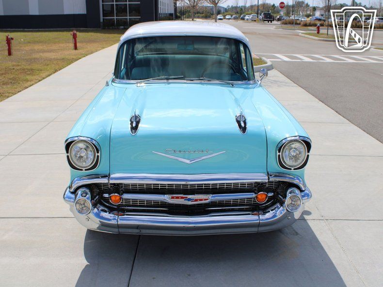 Gateway Classic Cars of Tampa is proud to digitally offer this clean 1957 Chevrolet 210. This Larkspur Blue and white beauty is a great example of going back to basics and not overcomplicating things. A base 210 post with a bench seat, crate 350ci, and a 5-speed manual is all you need. Front disk brakes and Hotchkis front and rear anti-roll bars keep this Tri-Five handling better than it ever did new. On the inside, it's pretty much how Chevrolet designed it except for Dakota Digital gauges and an aftermarket steering wheel. The 350 is peppy, the clutch is not too stiff, and the 5-speed trans make for an enjoyable driving experience. The chrome has a nice shine and overall, the car is a super nice driver sure to turn heads anywhere you go. And did we mention, this '57 has been a featured magazine car. Pop in the America Graffiti soundtrack and go cruise the strip. Looking for a solid '57, we've got one.