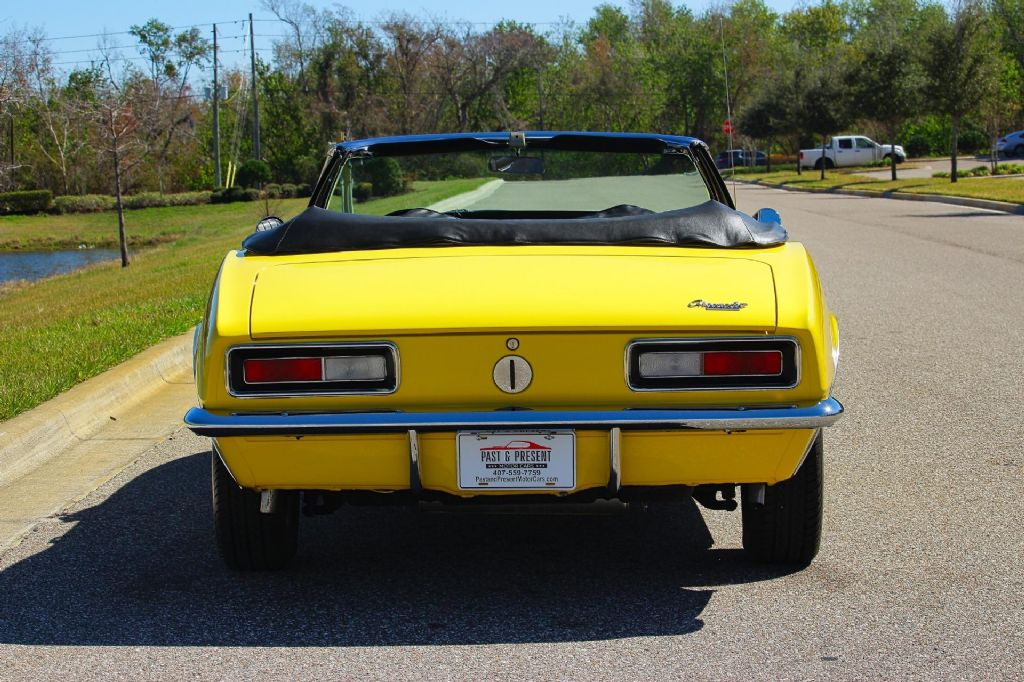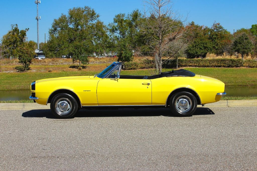 1967 Chevrolet Camaro Convertible, Rotisserie Restored, Believed Matching Numbers 327 V8 Theres something special about a first-year Camaro convertible. It represents the beginning of an era clean lines, timeless proportions, and that unmistakable late-60s American presence. This 1967 Chevrolet Camaro Convertible captures all of it, and then some. This car has undergone a full rotisserie restoration, meaning it was taken down to the bare shell and restored properly not just cosmetically refreshed. The underside is as clean and detailed as the top side. Floors, frame rails, and structural components present beautifully, reflecting the kind of work that separates a true restoration from a quick repaint. Under the hood sits what is believed to be the original matching numbers 327 cubic inch V8 producing 210 horsepower. The 327 is one of Chevrolets most respected small blocks " smooth, responsive, and reliable. Paired with a Powerglide automatic transmission, this Camaro delivers an effortless cruising experience. It shifts cleanly, drives straight, and feels tight and solid on the road. Out back is a correct 10-bolt rear end, rounding out a dependable and period-correct drivetrain combination. The exterior is finished in a very sharp yellow paint that absolutely pops in the sunlight. The body lines are straight, the gaps are clean, and the finish has a deep, smooth shine that shows extremely well. Its the kind of color that turns heads without trying too hard classic, confident, and unmistakably 1967. Inside, youll find a brand-new black bucket seat interior that contrasts perfectly with the yellow exterior. The seats, panels, and trim present beautifully and give the car a fresh yet factory-correct appearance. The cabin is clean, comfortable, and inviting. Equipped with power steering, this Camaro is easy to handle and enjoyable whether you're cruising downtown or heading out for a weekend drive. The convertible top completes the package, giving you the freedom to drop it down and enjoy open-air cruising the way these cars were meant to be enjoyed. This is a very nice car. Its not just attractive its properly restored, mechanically sound, and ready to be driven and enjoyed. First-generation Camaro convertibles continue to be among the most desirable muscle-era cars on the market, and examples restored to this level are becoming harder to find. If youve been looking for a sharp, rotisserie-restored 1967 Camaro Convertible with a strong 327 V8, automatic transmission, and classic color combination this is the one. While we do our best to provide the highest quality muscle cars with an honest and reliable description and realize the importance of transparency when selling vehicles. That being said, we have not built, modified, changed or personally owned this vehicle. Whether this vehicle is consigned or owned by Past & Present Motor Cars we do not know the vehicles complete history since new. We want to be clear and try to answer any questions our customers might have prior to purchasing. Additionally, we not only welcome but we encourage 3rd party independent inspections. Please inquire prior to purchase to make sure the advertised vehicle has not already been sold. We list our vehicles on multiple websites and a vehicle can sell at any time. If a customer chooses to purchase sight unseen (many of our customers choose this option) the customer accepts the vehicle AS IS and WHERE IS and understands we cannot address concerns after purchase. For this reason, it's important all concerns are addressed prior to purchase. We make every effort to present accurate and reliable information, but use of this information is voluntary, and should only be deemed reliable after an independent review of its accuracy, completeness, and timeliness. It is the sole responsibility of the customer to verify the existence of options, accessories and the vehicle condition before time of sale. Financing is Available with low rates and Vehicle Shipping is available from our Showroom to your Garage. A Classic Car Warranty is Available for Purchase from a 3rd Party. Please speak to our Sales Associate or Company Representative for more information. Our team is working and available anytime by Phone or Text for your convenience at 407-559-7759. Thank you for your interest!