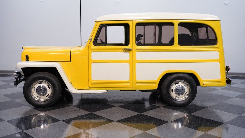 Built with the kind of attitude that belongs on dusty trails and mountain switchbacks, this 1951 Jeep Willys Wagon Restomod comes finished in Yellow and White with just the right mix of rugged utility and custom flair. Sitting on 15-inch rally wheels wrapped in 215/70R15 tires, this vehicle has a muscular, squared-off stance anchored by a Nova front clip and rear airbag suspension. Power disc brakes up front and dual FlowMaster exhaust out back round out the package, giving this Willys the mechanical grit to go with its adventure-ready styling.