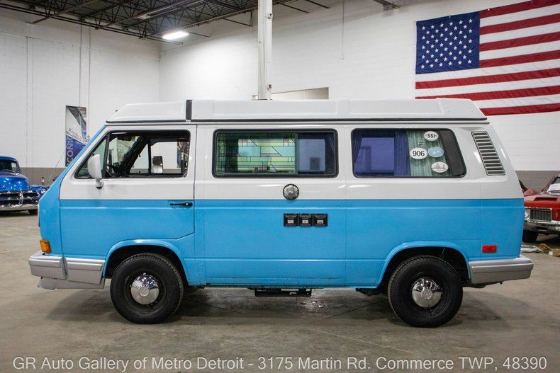 GR Auto Gallery is pleased to present this 1989 Volkswagen Vanagon Westfalia for your consideration. This Vanagon comes finished in a sharp Blue and White exterior over a clean Gray interior and shows 109,070 miles on the odometer. Powering this Westfalia is a 2.1L flat-four water-cooled engine paired with an automatic transmission. This well-cared-for example was repainted in 2024 and has received numerous recent updates including all new coolant lines, a new starter, new alternator, and a fresh battery. It features EFI fuel control, new spark plugs, a new distributor, a new exhaust system, new front brake pads and rotors, and new shocks. The canvas top has been replaced within recent years, and a new sink pump was installed in 2025. Additional features include a sliding side door, crank windows, Scosche speakers, full kitchen setup, foldable bed, and much more. This Westfalia is ready for camping adventures or traveling around the world. Drive this one out of our showroom or have us assist with shipping it to you anywhere in the United States! Don't hesitate to call us with any questions or for more information.