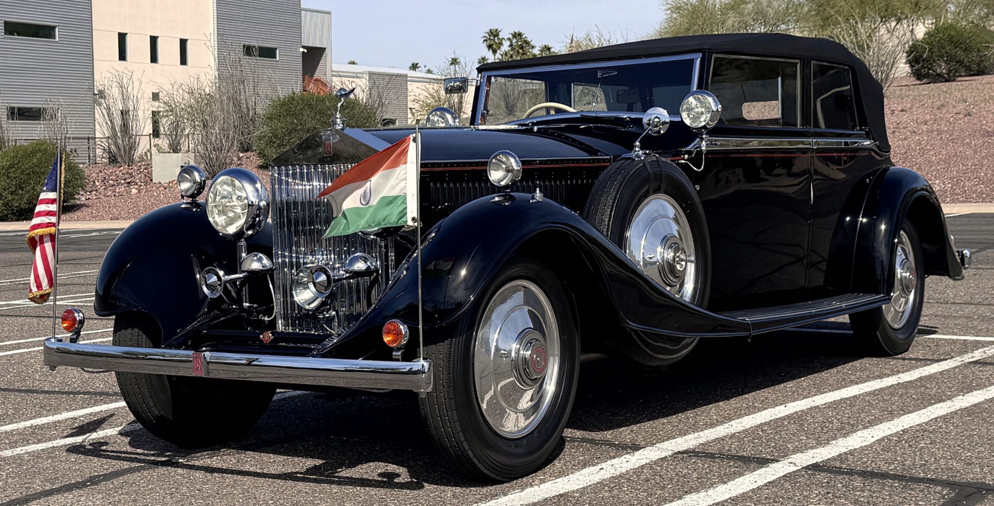 Built in 1929, chassis 3XJ was originally ordered by His Highness Maharaja Rameshwar Singh Bahadur of Darbhanga, one of Indias most influential princely rulers and a devoted Phantom II patron. Delivered new to Calcutta aboard the S.S. Mulberra, the Rolls-Royce was first bodied by Hooper before returning to England in 1935 to receive the current Thrupp & Maberly all-weather tourer coachwork, a transformation documented by The Autocar in January 1936. This Phantom remained in the Darbhanga collection for 38 years before returning to England in 1967, at which time mileage was recorded at approximately 8,000 original miles. Chassis 3XJ later passed through notable collectors in the United States and Europe and underwent a comprehensive restoration between 1997 and 2009. This Phantom has a significant history at many of the most important RROC and concours events, including earning Best in Class at the 2009 Meadow Brook Concours, and exhibited at the 2018 Pebble Beach Concours dElegance in the Motor Cars of the Raj class.