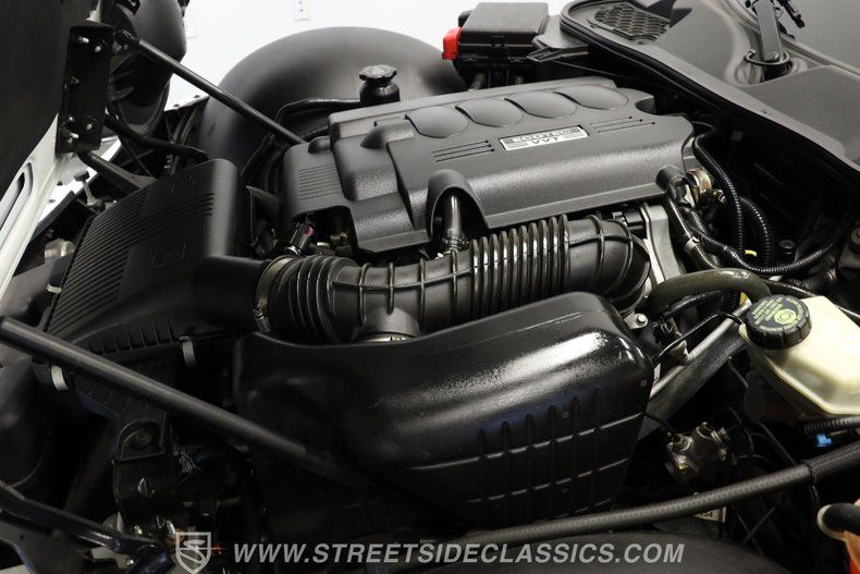 Inside, we find a sporty and driver-centric Ebony leather interior. Dual bucket seats offer a perfect balance of comfort and support. A three-spoke power-assisted steering wheel with thumb controls sits ahead of a three-pod gauge cluster where a small center fuel gauge is bookended by a big 140-mph speedometer and an 8,000-rpm tachometer. The wraparound dashboard is home to simple HVAC controls, along with an AM/FM/CD player handling soundtrack duties. Power windows, mirrors, and locks, combined with cruise control and air conditioning, offer all the modern amenities anyone could want in a late-model sports car.