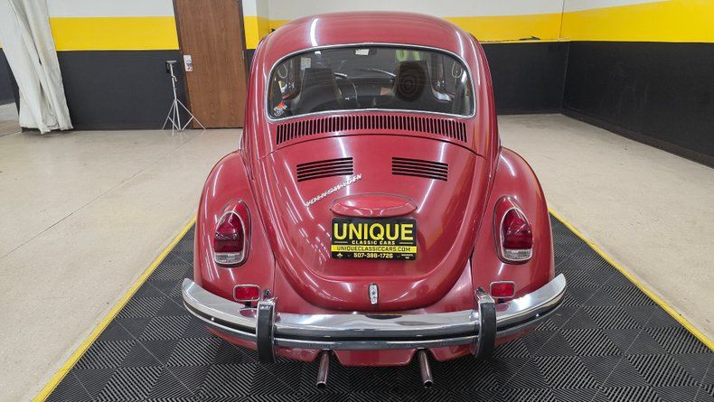 1970 Volkswagen Beetle. This Beetle has a documented history, with just over 40,000 original miles recorded. 1600cc engine paired with a rare "auto stick" transmission-a hybrid between a manual and automatic transmission. This easy to drive gearbox eliminates the need for a clutch pedal and allows the driver to shift between first and second gears manually, with an additional low gear primarily for steep inclines. The car was actively used until the mid to late 1980s, followed by a long storage period. The second owner, who acquired the car in 2018, performed maintenance such as replacing gas lines, carburetor components, brake lines, and the fuel tank. The Beetle features its original red paint with minor touch-ups, vinyl bucket seats, and an original interior. Good condition interior with black bucket seats, door panels and dash. Riding on VW wheels with center caps, and white wall radial tires. Featuring an electric rear glass defogger. Slight brake pull and pulsation are noted, and two tie rods are slightly loose. The fuel gauge and speedometer function correctly. Astonishingly nice original condition, and well cared for. The windshield washer, which functions via air pressure from the spare tire is even intact. This car was ordered without a radio. On the road, the Beetle's nimbleness, comfort, and the ease of driving offered by the auto stick transmission are enjoyable.