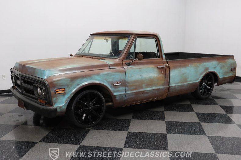 You'd have a hard time finding a truck from any era that effectively combines the sensibilities of this 1970 GMC 1500 Patina Restomod. The natural patina derived from years of service is proudly displayed over its exterior, serving notice that this venerable pickup has seen a lot in its considerable lifetime and is all the better for it. By contrast, an aggressive lowered stance and a set of attention-grabbing 20" KMC wheels add a definite aftermarket sensibility. Add to that a frame that's been properly prepped for a premium aftermarket suspension, with the dual air compressors already in place, and you have one seriously distinctive ride, a ride you're unlikely to come across anytime soon on the road.