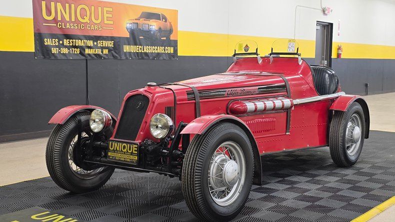 A fiberglass replica of a 1931 Alfa Romeo, built on a VW chassis with VW engine and four-speed manual transmission.