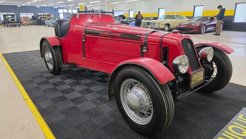 Alfa Romeo replica built on a 1976 Volkswagen chassis. This replica is a fiberglass-bodied vehicle styled after a 1931 Alfa Romeo, powered by a VW air-cooled engine paired with a four-speed Volkswagen transmission. Riding on steel-spoked wheels with Firestone tires. Featuring a black vinyl interior, and a distinctive dual windshield setup with a classic cock-pit racing car look.. Although the car is finished in a satin low-gloss red paint, it has some minor imperfections such as cracks and touch-up spots. Recent service work includes new fuel pump, new wheel cylinders, front brake hoses and master cylinder, and a rebuilt carburetor. The tires could use replacement due to age. Gauges functional, the amp meter is reported to red inaccurate. The button to the left of the steering wheel is the "ooogah" horn. Of the four switches on the dash, the light switch turns on the vehicles exterior lights. The engine is located under a rear flip-up cover, while the front compartment houses the fuel cell, battery, and brake fluid reservoir. When driven, its smooth operation and vintage roadster feel make this a fun, open top head turner!