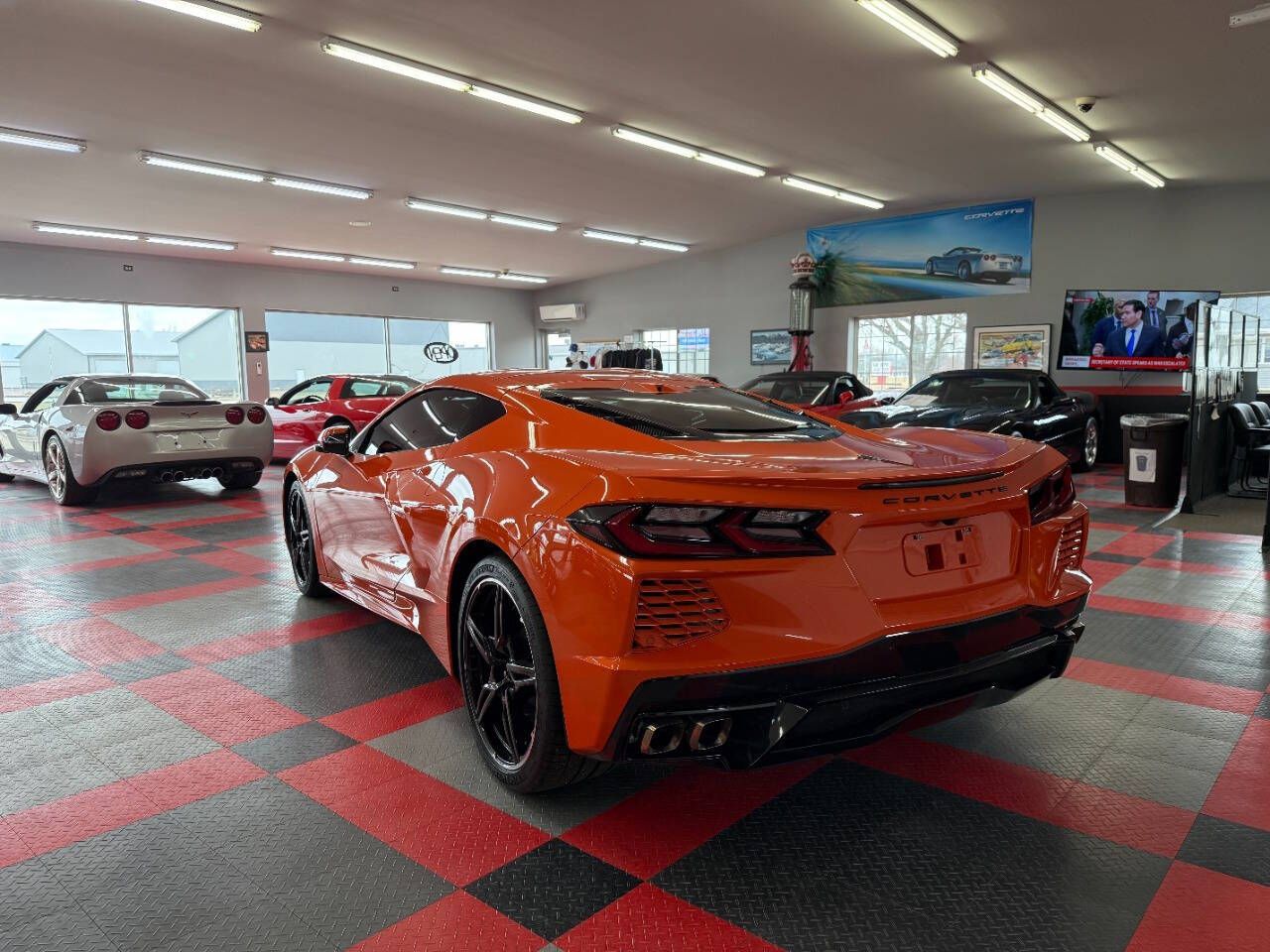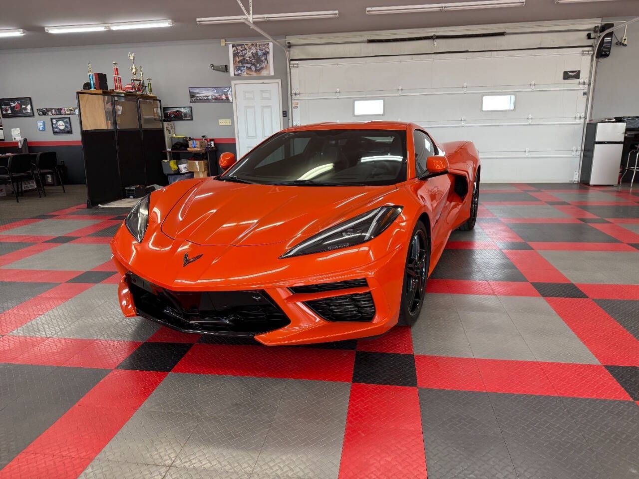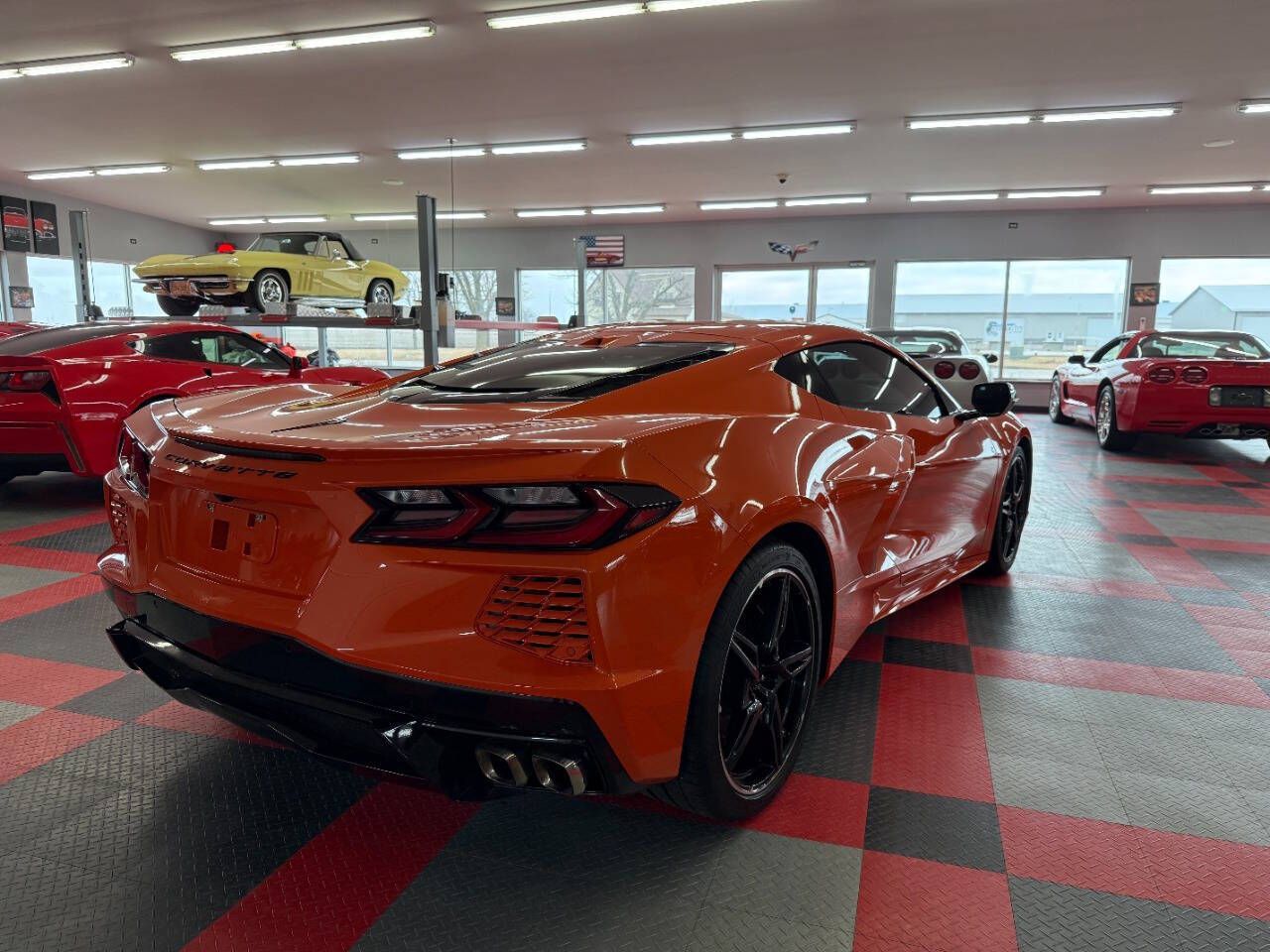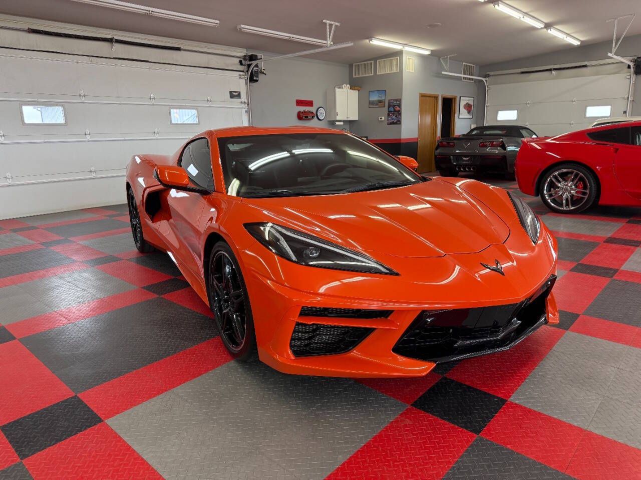 2020 Chevrolet Corvette Stingray 2dr Coupe w/2LT This C8 is a 2020 Chevrolet Stingray 2dr Coupe equipped with a preferred 2LT Trim package, 6.2L 490hp LT2 V8 engine, with an automatic 8 speed transmission. This car has an orange exterior with gray leather and cloth interior. This luxury sports car has only 13,511 miles.