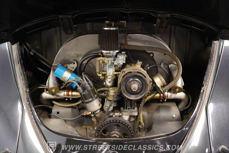 Step inside to find a simple yet inviting VW interior that balances vintage style with everyday comfort. The front and rear seats have been redone, providing plush cushioning and minor wear for a welcoming feel. Clean carpets fit nicely underfoot, while original details like the steering wheel and VDO gauges keep the cabin authentic. A Gene Berg shifter and a period-correct Bendix AM/FM radio add both charm and practicality, making every drive an experience to remember.