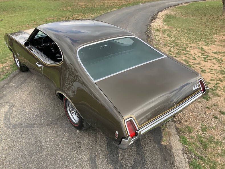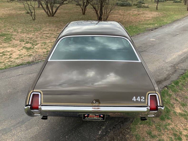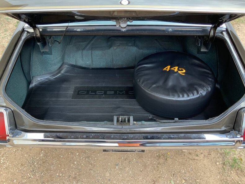 Welcome to Street Dreams as we celebrate our 27th year in the classic and muscle car business. O.K. Oldsmobile guys, here's some juicy red meat for all of you who say we don't carry enough old Olds'. The Oldsmobile 4-4-2 was that division's response to the unexpected success of rival Pontiac's GTO, the progenitor of the muscle car. Caught off guard by the GTO, Olds responded quickly with off-the-shelf parts and the 4-4-2 moniker indicated a 4-bbl carburetor, 4-speed transmission, and dual exhaust. By the time this incredible 1969 4-4-2 Holiday Coupe came along many customers wanted an automatic transmission, so the numbers now stood for a 400 ci engine, a 4bbl carburetor, and dual exhaust. Beneath the dual striped hood (W42) you'll find the stout, numbers matching (BCN 396026G, VD 338267) 400 V8 that's been fortified with an Edelbrock carburetor and aluminum intake manifold as well as ceramic coated headers. Additional features include power steering (N40), power front disc brakes (JL2), Four-Season air conditioning (C60), stout TH400 automatic transmission (M40), Anti-Spin rear axle (G80), console (D55), AM/FM Stereophonic Radio (U58), Stereo Tape Player (U57), Custom-Sport steering wheel (N54), and Super Stock II wheels (N66) wrapped with correct F70-14 bias ply tires. This is an astoundingly well-preserved automobile that drives like a dream. Documentation includes original window sticker, Protect-o-Plate, broadcast card, and owner's manual. The owner history shows the original buyer, M.L. Earnhardt of North Carolina, left the car to his son Tommy who built engines for various NASCAR teams. I couldn't find a direct connection to Dale, but they've got to be cousins, right?! One more outstanding cruiser from the Texas Hill Country's premier source for top-shelf muscle machines and the team that can make your dream a reality. Street Dreams (830-997-1950) is a full service dealership that can assist with worldwide delivery, insurance, and financing options.