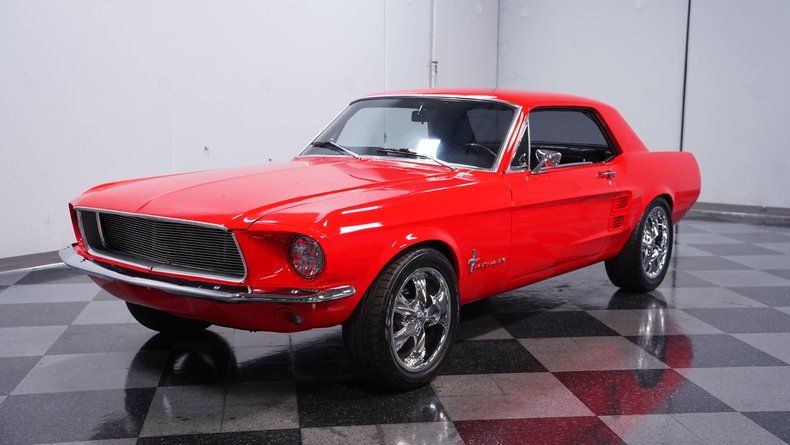 With its Race Red paint so shiny it nearly radiates and an assembly of chrome and bright work that's in great form, this 1967 Ford Mustang is a super-sharp, tastefully modified rendition of Ford's pivotal muscle car. An added set of staggered, attention-grabbing 17"/18" Foose wheels provides just the right of aftermarket flair and, as you take a lap around this classic, you'll be hard-pressed to find any flaws to detract from its elite curb appeal. In fact, the pristine exterior of this Pony would make it a standout, even in a crowd of well-heeled vintage rides. It's really that clean. Its overall fit and finish is equally impressive, with tight, even gaps between body panels and well-aligned badging that's securely in place.