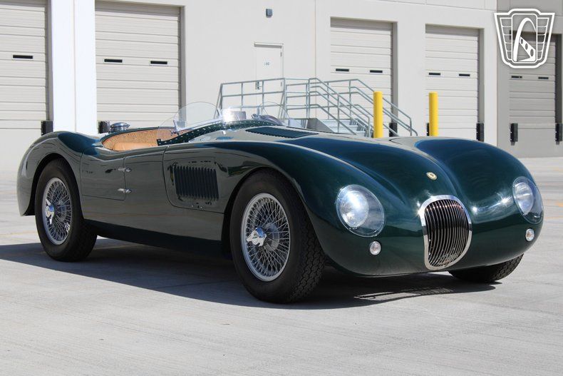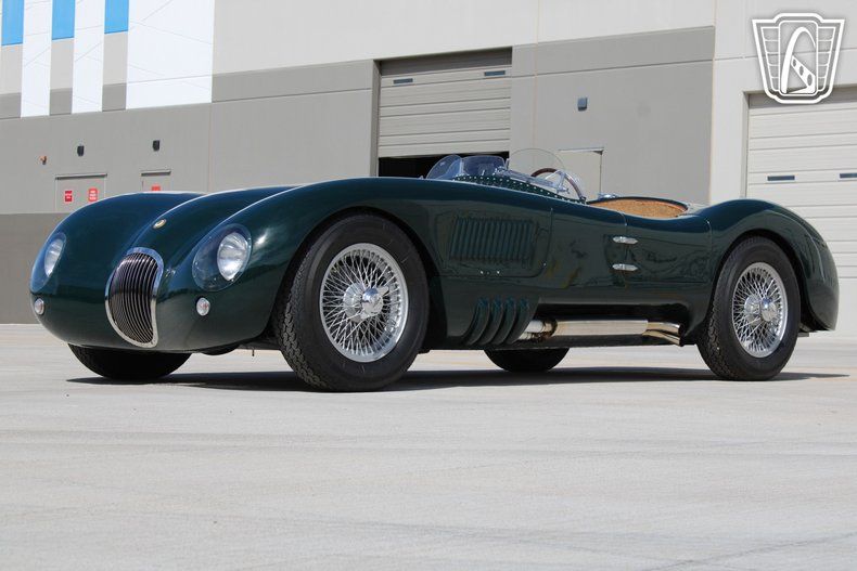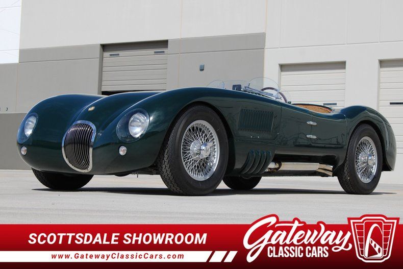 Gateway Classic Cars of Scottsdale is honored to digitally present this stunning 1953 Jaguar C-Type Sports Racer Replica, finished in the iconic Jaguar HFB Brooklands Green. Crafted by Proteus with a GRP fiberglass body molded from an original C-Type, this masterpiece captures the spirit of one of the most celebrated racing legends. The fully triangulated space frame chassis, powder-coated for durability, ensures a solid foundation, while the wheels and hubs add an authentic touch to this timeless design.