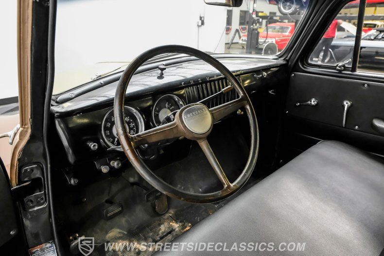 Step inside to discover a clean and inviting factory-style interior. The reupholstered black vinyl bench seat offers a touch of comfort while maintaining the truck's authentic look. The original dash, gauges, and classic steering wheel with 3-on-the-tree column shift provide a vintage atmosphere, making every drive feel like a trip back in time. Simplicity meets function here, creating a space that's as enjoyable to sit in as it is to show off.