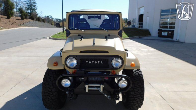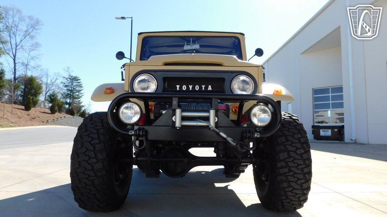 Powered by the dependable Toyota Land Cruiser FJ40 platform's upgraded 2F inline-six engine, this Land Cruiser benefits from performance and cooling improvements including dual carburetors, an aluminum radiator, and an electronic fuel pump. Power is delivered through a 4-speed manual transmission, paired with a rear differential and manual locking front differential to maintain the serious off-road capability these trucks are known for.