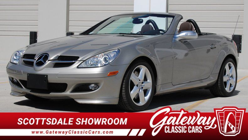 Gateway Classic Cars of Scottsdale is proud to digitally present this 2005 Mercedes-Benz SLK350, finished in an elegant Pewter Metallic exterior paired with a rich Brown leather interior. As you settle in, the luxurious craftsmanship of the cabin surrounds you, with every detail designed to enhance your driving experience. The automatic convertible top invites you to embrace the open road, effortlessly transforming this sleek roadster into a sun-soaked escape at the touch of a button. With its timeless design and iconic Mercedes-Benz styling, this SLK350 is a true testament to the brand's legacy of blending performance and sophistication.