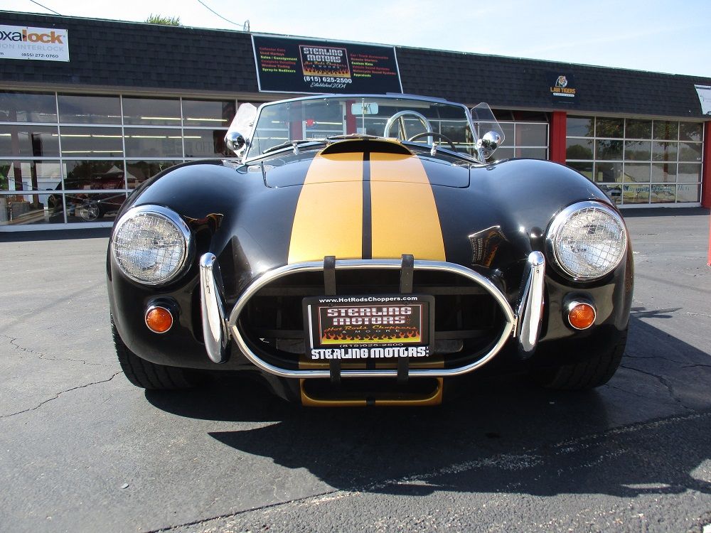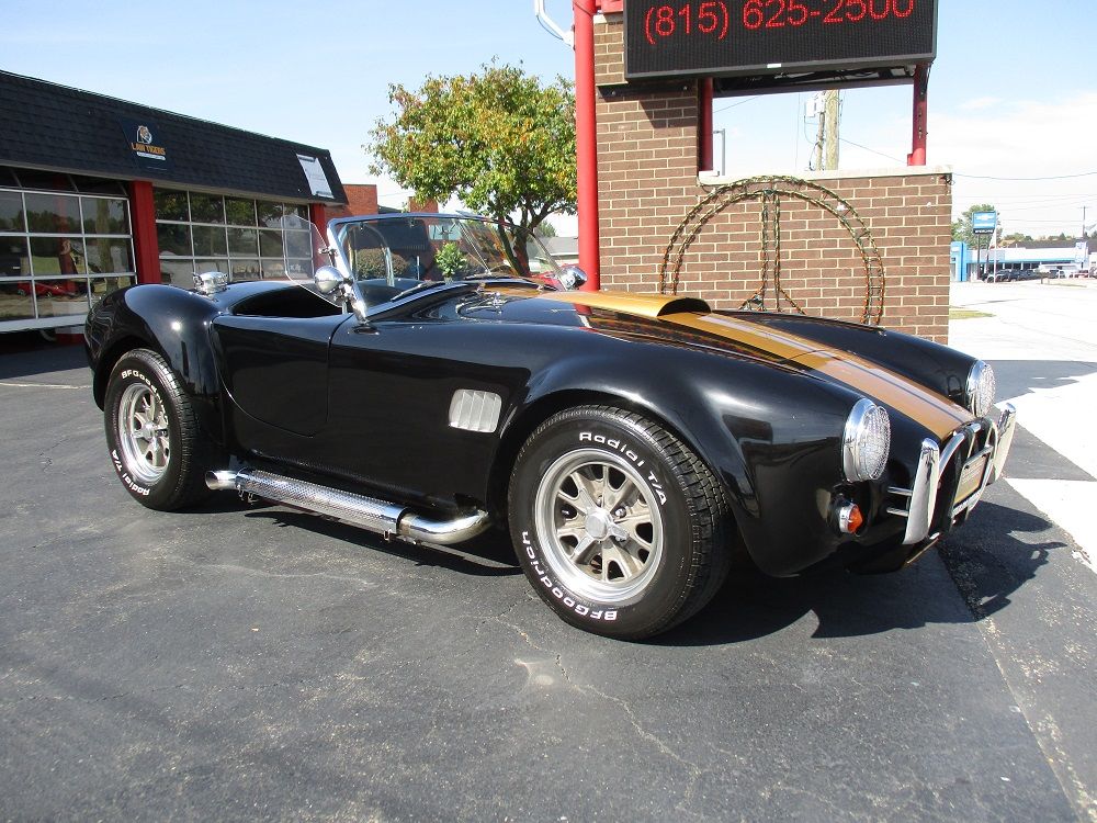 Born from Carroll Shelby’s vision in the 1960s, the Shelby Cobra combined a lightweight British AC roadster with big American V8 power. The result was one of the most legendary and fearsome sports cars ever built. An icon of speed, sound and style. With originals now fetching well into seven figures, replicas like this have become an affordable way to own the legend. This particular kit was supplied by Finish Line who supplied all of the parts for the build. It is powered by a Ford 302ci V8 that is fed via a Quick Fuel 600cfm carb and an Edelbrock Performer intake. It is sparked with an electronic ignition and it sounds just plain nasty ripping through its performance headers and stainless-steel side exhausts. It’s 300 + hp are put to the 10 Bolt posi 8.5” rear end with a Borg Warner T5 5-speed manual transmission. It is finished in black with gold stripes, has a gorgeous set of 15” spinner rims with BF Goodrich Radial T/A tires and it comes with a removable hardtop. The cockpit sports the iconic Shelby Cobra wood steering wheel as well as black leather seats and shoulder harnesses. You will also appreciate the front and rear bumpers, driver roll bar, functional wipers, horn and full street-legal running gear. It currently has 10,502 miles, everything works as it should and it turns heads everywhere it goes. We have priced it to move as quick as it goes so if you like what you see we encourage you to contact us before it is too late!