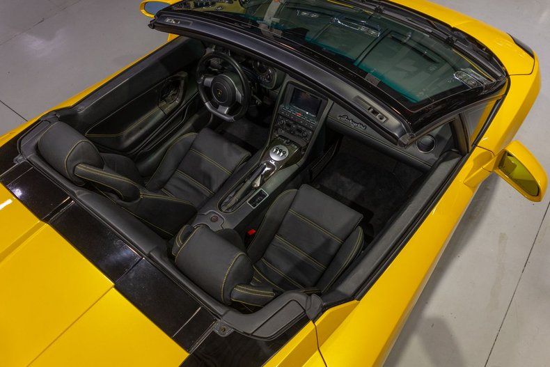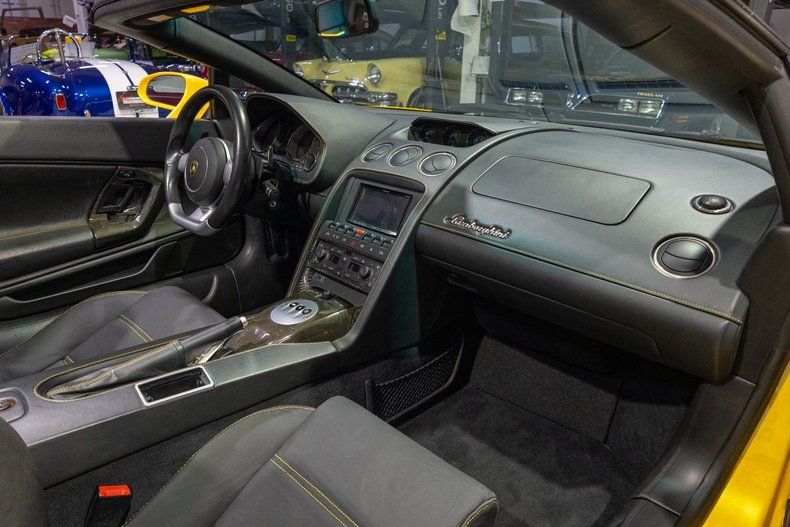 This 2007 Lamborghini Gallardo Spyder is an exhilarating Italian exotic that combines breathtaking V10 performance, unmistakable Lamborghini styling, and the thrill of open-air supercar driving. Few modern supercars capture the spirit of Italian performance and design quite like the Lamborghini Gallardo Spyder. Introduced in the mid-2000s, the Gallardo represented a new era for Lamborghini-one that blended the brand's unmistakable exotic styling with improved reliability, cutting-edge engineering, and everyday drivability. When Lamborghini unveiled the Gallardo Spyder in 2005, it quickly became one of the most desirable open-top supercars on the market, combining breathtaking performance with the exhilaration of top-down motoring. The 2007 Lamborghini Gallardo Spyder continued the success of Lamborghini's best-selling model of the era. Developed during Lamborghini's ownership under the Volkswagen-Audi Group, the Gallardo benefited from advanced engineering and modern manufacturing techniques while still delivering the raw excitement that enthusiasts expect from the legendary Italian marque. At its heart sat Lamborghini's thrilling 5.0-liter V10 engine, producing a spine-tingling exhaust note and delivering the kind of blistering acceleration that firmly placed the Gallardo among the elite supercars of its time. Visually, the Gallardo Spyder embodied Lamborghini's signature wedge-shaped styling with sharp body lines, aggressive air intakes, and unmistakable supercar proportions. The power-operated soft convertible top could be raised or lowered in seconds, transforming the Gallardo from a sleek coupe-like profile into an open-air exotic ready to unleash the full symphony of its V10 engine. Inside, the Gallardo Spyder offered a driver-focused cockpit trimmed in premium leather and aluminum accents, blending luxury with race-inspired ergonomics. The low-slung seating position, sculpted dashboard, and precise instrumentation ensured that the driver remained fully connected to the road while enjoying the refinement expected from a modern Lamborghini. This particular Gallardo comes to us from the warm climates of the Southeastern US after it was sold new in California. Under the transparent rear bonnet is a 5.0 Liter dual overhead cam 4-valve V-10 outfitted with electronic fuel injection rated to produce over 500 horsepower from the factory. The 5.0L V-10 is mated to a 6 Speed E-Gear Automated Manual gearbox that is shifted sequentially via a set of F1-style paddle shifters making this Gallardo an easy supercar for anybody to drive. The 513HP Italian-built powerplant sports an upgraded exhaust setup that produces a thunderous rumble out of the tailpipes. This Lamborghini also comes equipped with numerous creature comforts! Power-assisted rack and pinion steering makes squeezing into a tight parking space an almost effortless procedure, easily accomplished with a single hand. You'll also be able to easily bring this Lamborghini Gallardo to a complete stop thanks to 4-wheel power disc brakes with ABS along with vented rotors and Giallo painted 8-cylinder calipers up front and 4-cylinder calipers in the rear. Significantly improving traction is the Viscous Coupling Traction System that acts as essentially an all-wheel drive setup, along with limited slip front and rear differentials. Further improving traction is the electronically controlled rear spoiler that is deployed automatically when the car needs additional downforce. Riding on a set of glossy black Callisto Wheels with 235/35ZR19 tires up front and 305/30ZR19 tires in the rear, this '07 Lambo has a fantastic look whether you're cruising down the road or pushing its limits at the track. The Nero cloth Spyder power convertible top is easily raised and lowered with the simple push of a button. This Lamborghini's body has been finished in Giallo Halys paint that gives it such an iconic look. The interior of this 2007 Lamborghini Gallardo Spyder is gorgeous! The driver's and passenger's bucket seats have been upholstered in gorgeous Nero Perseus Leather and accented with Giallo Taurus yellow stitching. The matching Nero leather Giallo stitched door panels, dash, and center console all feature optional carbon fiber accents that further elevate the interior look of this Lamborghini. Speaking of options, the interior comes absolutely loaded with them! Not only are the bucket seats 6-way power adjustable, they also come equipped with power adjustable lumbar support as well as heated seats, making for an even more comfortable ride. Additionally, the power adjustable mirrors allow you to achieve the perfect sightline, and they can even be folded entirely in with the flick of a switch should you need additional clearance. Unsurprisingly, the windows on this Gallardo are powered as well, going up and down with ease. Additionally, the door locks are powered allowing you to unlock the doors with an interior button along with the keyless-entry key fob. Dual-zone Air Conditioning and Heating further improve overall comfort, allowing you to stay cool during a hot summer day and warm on crisp evening cruise. Another unique feature rarely seen on performance cars of this era is the front lift package that allows you to raise and lower the front end when you need a bit more clearance going over a speed bump or up an inclined driveway. The stock reverse camera was also quite a novelty in its time and it integrates smoothly with the upgraded Pioneer touch-screen Infotainment system complete with an HD radio, bluetooth, Android Audio, and CarPlay. The instrument cluster is also trimmed with carbon accents and features a 210 MPH speedometer, 10,000 RPM tachometer w/ 8,000 RPM redline, engine and oil temperature gauges, oil pressure gauge, voltage gauge, and fuel gauge. Whether you're buying your very first exotic car or you're adding to your collection of Lambos, this 2007 Lamborghini Gallardo Spyder would make a wonderful choice. Give Ellingson's a call today a