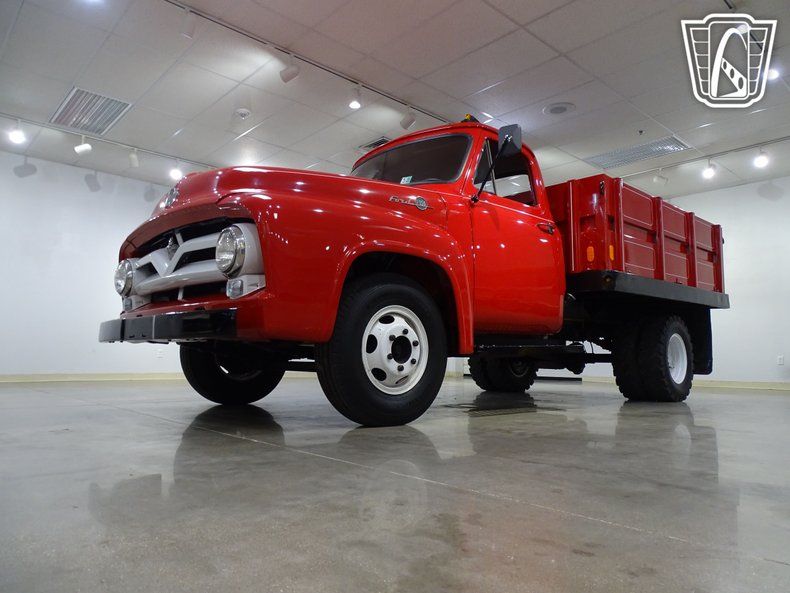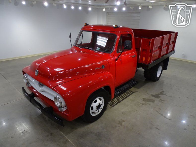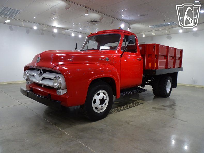 Step back in time and experience the charm of classic American craftsmanship with this stunning 1955 Ford F350. Dressed in a bold and vibrant red exterior, this truck commands attention wherever it goes. Slide into the matching red leather interior, and you'll immediately feel the warmth and nostalgia of a bygone era. The supple leather seats, paired with the simplicity of the cabin, create an inviting space that's both timeless and comfortable.