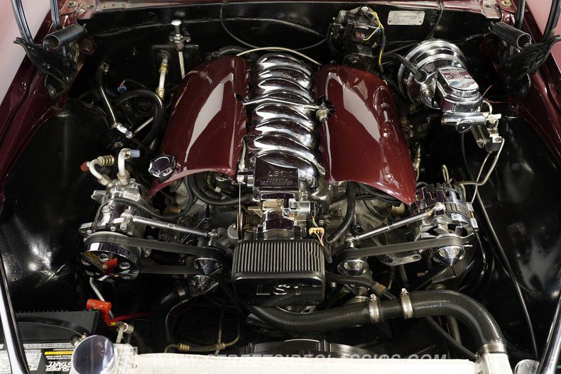 Under that swoopy hood, we find an aluminum 5.7-liter LS1 V-8 engine. Sporting body-color valve covers on top of lightweight aluminum 853 heads, a polished intake manifold, custom camshaft, and an aluminum radiator complete with an electric fan, this small block is capable of producing yesteryear's big block levels of power. Those ponies are routed through a 4L60E four-speed automatic transmission before being sent out to the ten-bolt rear before reaching those stellar 18-inch rear wheels.