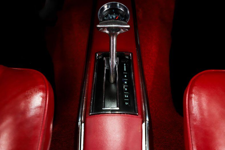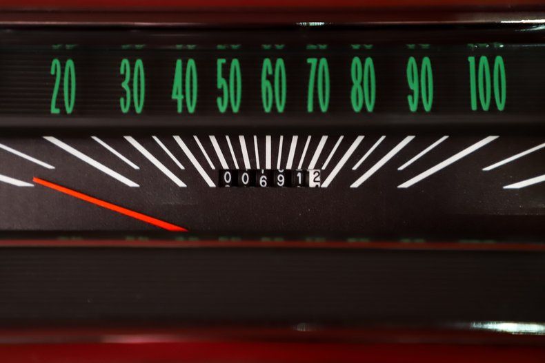 INTERIOR: Wow-the red interior really sets this car off with a bright, fresh look. The door panels, armrests, carpet, headliner, and visors have all been replaced, and the seats have been re-cushioned and upholstered. The vibrant red carpet and factory center console with clock really bring it all together. The dash pad has been replaced, and the gauges have been upgraded to modern units with a retro appearance, including a tachometer. It also features upgraded electric slide controls for the A/C, along with a retro-style stereo in the factory location and 6x9 speakers in back for great sound.