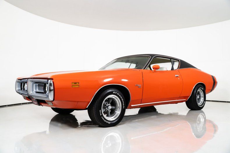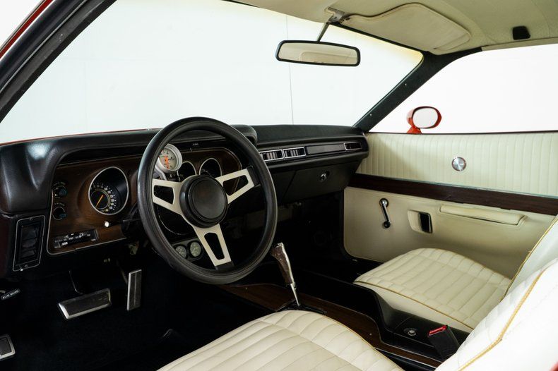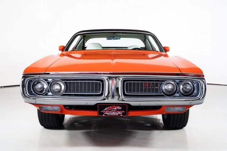 Finished in striking Hemi Orange with a black vinyl top, this Dodge Charger for sale has the unmistakable look enthusiasts expect from early 70s Mopar muscle. The stance is dialed in with 15-inch American Racing wheels wrapped in 275/60R15 rear tires and 245/60R15 fronts, giving this Charger the right balance of aggression and drivability.
