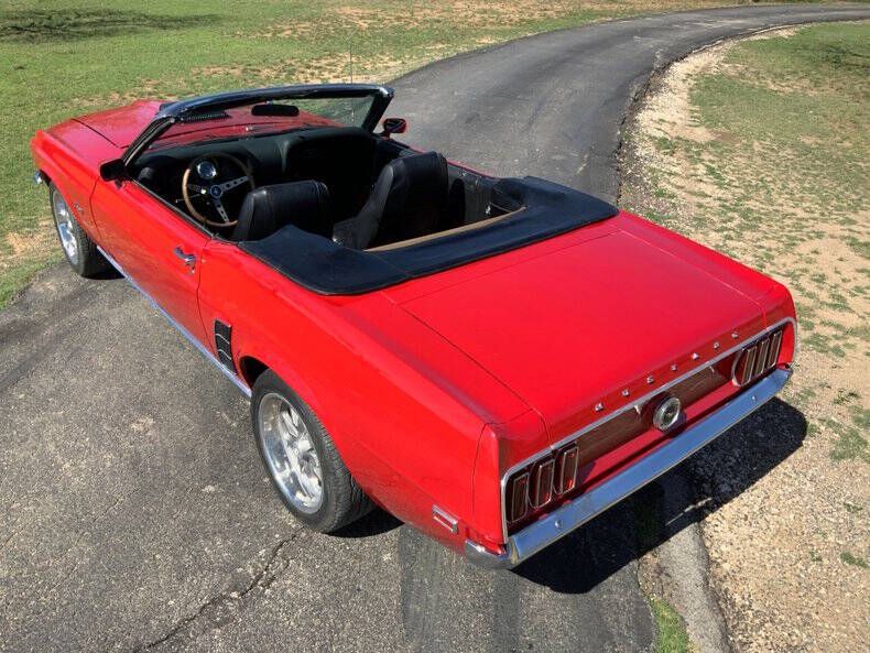 Street Dreams Texas is excited to present this iconic 1969 Ford Mustang Convertible, a timeless classic that combines vintage style with thoughtful performance upgrades. Finished in red with a black convertible top and a striking black hood scoop, this Mustang turns heads from every angle while maintaining a classic, aggressive look. Under the hood sits a robust 351ci V8 paired with a smooth C6 automatic transmission, delivering confident performance on any road. Upgrades like the X-pipe dual exhaust with MagnaFlow mufflers, Champion aluminum radiator, and Wilwood brake calipers on 4-wheel power disc brakes enhance handling, stopping power, and exhaust tone compared to the original factory setup. An aftermarket tach mounted on the steering column keeps you fully in command of the V8's power. The interior features classic black vinyl, complemented by bucket seats with center console and a wood steering wheel, blending vintage charm with functional comfort. Power steering ensures easy cruising, while US Mag wheels complete the aggressive yet elegant exterior stance. This 1969 Mustang Convertible is a fantastic opportunity for collectors or enthusiasts seeking a classic American muscle car that's ready to drive and enjoy today. Street Dreams Texas was founded in September 1999. If you're ready to experience this Mustang firsthand, call us at (830) 997-1950. We offer worldwide delivery, financing, and insurance options to make your purchase simple and hassle-free.