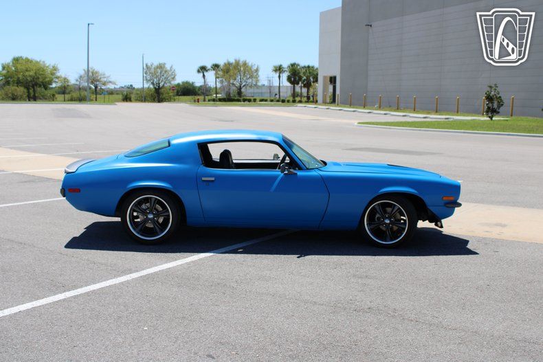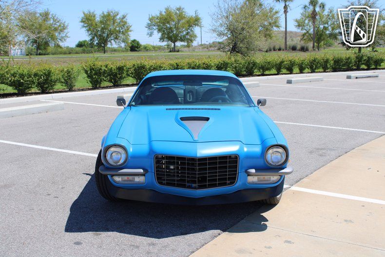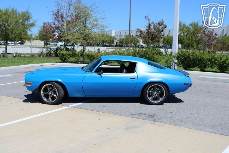 Gateway Classic Cars Tampa Showroom is excited to digitally present this killer 1971 Chevrolet Camaro. The split bumper Camaro is one of the all time favorites among second generation F-body enthusiasts. This Restomod was a four year build using top shelf parts. Under the hood resting in the painted and detailed engine bay you'll find a rebuilt 5.3ls that's topped with an MSD Air Force Intake manifold and EFI system. A Champion aluminum radiator and electric fan keeps things running cool while Vintage A/C keeps the passengers riding in the custom leather and suede interior cool as well. Four wheel disc brakes bring everything to a stop while tubular control arms and adjustable coilovers make this unibody handle better than it ever did new. If the Dynomax exhaust doesn't sound good enough, no worries, the RetroSound system can help out. The matte blue paint with gray accents makes this Camaro stand out from among the crowd. Find a '71 Camaro and have a shop build it to this level for under $50k....impossible.
