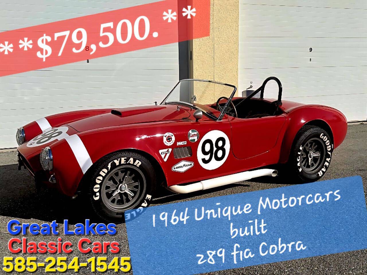Built by Unique Motorcars Equipped with a powerful small block Ford 351-Cleveland Engine mated to a Nimble 5-Spd Tremec Manual Transmission. Aluminum Heads Jaguar Rear with 3.71:1 Gears Knock Off Halibrand Wheels Only 16,000 miles since built. This Powerhouse combination is Built to Run! These Cobras when Built Right make The Best Vintage Racers. Our Car is No Exception! Built Right and Looks Great! We Sell and Ship Worldwide - Financing Available with Low APR
