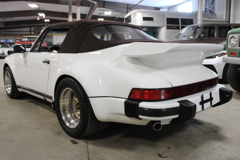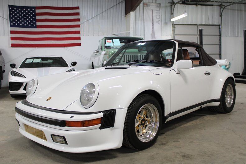 Although the basic shape of the 911 has remained mostly true to the original from 1964, the 3.2 Carrera that was built from 1984 through 1989 would be the last iteration of the "original" 911 series and still be 80% new compared to the generation before. This particular Widebody 911 is a tourist delivery car that is finished in Grand Prix white, the top is new with the color change from factory black to brown and also coded VZ which was Sonderwunsch or "Special Wishes" so the purchaser had some sort of say on how this car was outfitted. I personally love how "80's" this car still looks. Furthermore this Cab is ready to go with a recent $20,000 service just performed by a very reputable independent Porsche shop where everything that needed done was taken care of. It starts, idles, runs and goes down the road very nicely with no rattles, vibrations, smoke or leaks. The paint is in very good condition, the interior is in decent condition for its age showing a little wear on the driver bolster and some staining on the carpet but still very presentable. The engine bay is tidy as well as the frunk. No, there is no compressor or tire guage as this car was delivered without, code 464. We welcome any questions and inspections here in our Traverse City showroom. If you truly want something that stands out and garners all the attention, then this might be the 911 for you!