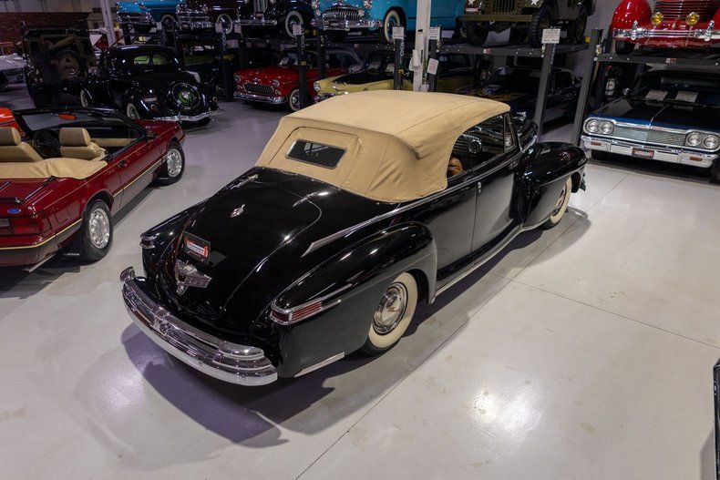 This 1947 Lincoln Model 76H Convertible Coupe is a luxurious, post-war Lincoln with fantastic options and wonderful provenance. Despite having survived the Great Depression and World War II, the immediate post-war Lincolns were remarkably similar to the pre-war designs. The reason for this was because the American automotive manufacturers had ceased production of consumer vehicle production and their production facilities were dedicated to the War effort. Yet, instead of spending months or even years re-tooling their plants to accommodate new car designs, Lincoln (like virtually every other American manufacturer) opted to utilize the same pre-war body designs and modestly update decorative trim, interior options, and even, in the case of Lincoln in 1947, upgrade the power plant. Certainly the overall silhouette of the '47 Lincoln models mirrored those from 1942 and 1946, and even some features like the push-button door "handles" were carried forward into the early 1947 model year. Perhaps the most substantial upgrade for the 1947 Lincoln came in the form of the new engine, now capable of producing 130 horsepower rather than 120 horsepower found in the earlier version. In 1947, Lincoln offered two product lines, the standard Model 76H as well as the more expensive Continental. In both product lines, the most exclusive body was, of course, the Convertible Coupe, both of which sported the highest MSRP in their respective line. Interestingly however, the Model 76H Convertible Coupe is believed to be far more rare than the Continental since Lincoln produced 738 Continental Convertibles compared to 384 76H Convertibles. The easiest way to differentiate a Continental from the Model 76H is by looking at the rear; where the Continental has a bustle back hump for a trunk, the Model 76H has a more elegant sloping design for the deck lid. This particular 1947 Lincoln 47H Convertible Coupe comes to us from a meticulous caretaker who stewarded the car for nearly 40 years after reportedly purchasing the car from a collector based in Southern California. Under the hood on this '47 Lincoln Convertible is a 305 Cubic Inch L-Head V12 fed by a single 2 barrel carburetor that together were said to have produced 130 horsepower when new. The 305 V-12 is backed by a 3 speed manual transmission with overdrive that makes this 1947 H-Series Lincoln an enjoyable car to take for a cruise. Exhaust exits the 130hp powerplant via a stock set of exhaust manifolds and out through a single tailpipe, generating a terrific sound at idle and cruising down the road. Riding on full wide whitewall tires mounted on steel painted color-matched wheels and elevated with Lincoln emblazoned full wheel covers and Beauty Rings, this 1947 Lincoln Convertible Coupe has a fantastic look whether you're parked at the local car show or enjoying the car on the open road. The tan cloth power convertible top is in wonderful shape, raising and lowering effortlessly with the flip of a switch. Additionally, when the top is in its lowered position, it tucks neatly below a matching convertible top boot for a more streamlined look. Driver's side spot light is backed by an outside mirror, which together improve visibility and add some period-correct flair. The all-steel body has been refinished in Black paint, completing the exterior look of this wonderful post-war cruiser. The interior of this 1947 Lincoln Model 76H Convertible Coupe looks great! The front and rear bench seats have been restored using Walnut Tan upholstery, tastefully complementing the overall look of this Lincoln. The matching door panels, Caramel carpeting and floor mats, painted dash, and steering wheel all show well and they all retain a nice stock appearance. Instrumentation remains in its stock configuration as well, consisting of a 110 MPH speedometer, temperature gauge, oil pressure gauge, amp gauge, and fuel gauge. Interior is also pleasantly optioned, including front and rear cigar lighters and ashtrays, a heated defroster, and even all 4 power windows go up and down with the simple flick of a switch. The dash is finished off with a locking glovebox, Clock, and AM radio with integrated speaker so that you can listen to all of your tunes while enjoying this Lincoln Convertible to the fullest! Whether you're a card carrying member of the Lincoln & Continental Owners Club (LCOC) or you're buying your very first classic car, this 1947 Lincoln Model 76H Convertible Coupe would make an excellent choice. Give Ellingson's a call today at 763-428-7337!