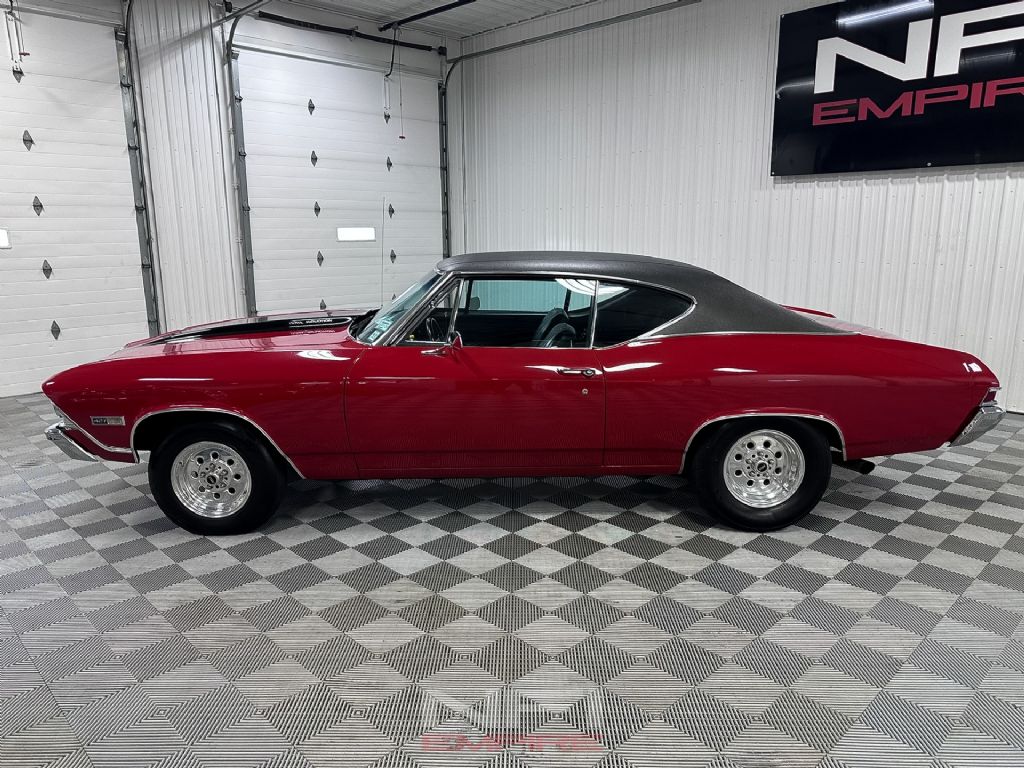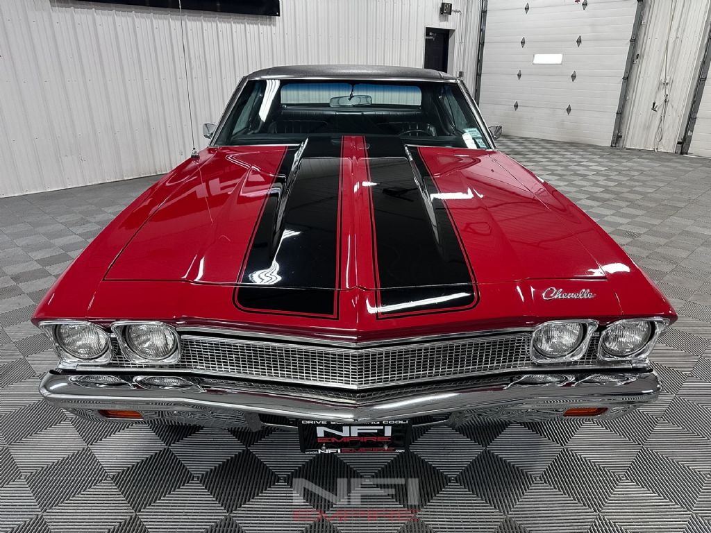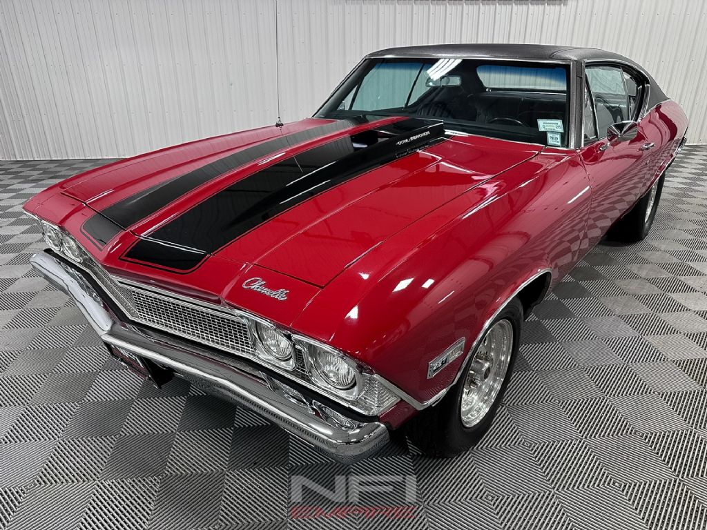 This 1968 Chevrolet Chevelle Malibu is finished in a classic red exterior with black stripes and a black vinyl roof, giving it the look enthusiasts want from a late-'60s A-body. Under the hood is a 454 V8 equipped with MSD ignition, Brodix heads, an Edelbrock intake, a Quick Fuel performance carburetor, and an SS Series Aeromotive fuel pressure regulator. Long-tube headers feed into Magnaflow mufflers for a setup that matches the car's muscle-era character.
