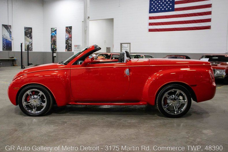 GR Auto Gallery is pleased to present this clean, low-mileage, 2004 Chevrolet SSR for your consideration. This SSR comes in a stunning Redline Red exterior over a clean Black interior with just 19,719 miles on the odometer. Powering this SSR is a 5.3L Vortec V8 producing 300 horsepower, paired with a smooth-shifting 4L60E 4-speed automatic transmission. This well-cared-for example comes loaded with features including power windows, a power retractable hardtop convertible, functioning heat and air conditioning, custom hand-painted pin striping, Bose premium speakers, power seating, heated seats, power mirrors, intermittent wipers, cruise control, power locks, a carpeted rear trunk area, K&N intake, red SSR brake calipers, Chevrolet chrome wheels, and much more. Drive this one out of our showroom or have us assist with shipping it to you anywhere in the United States! Don't hesitate to call us with any questions or for more information.