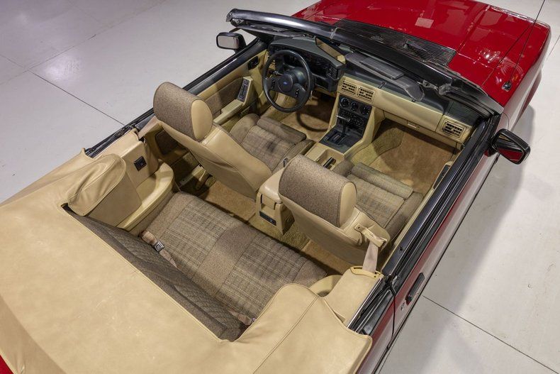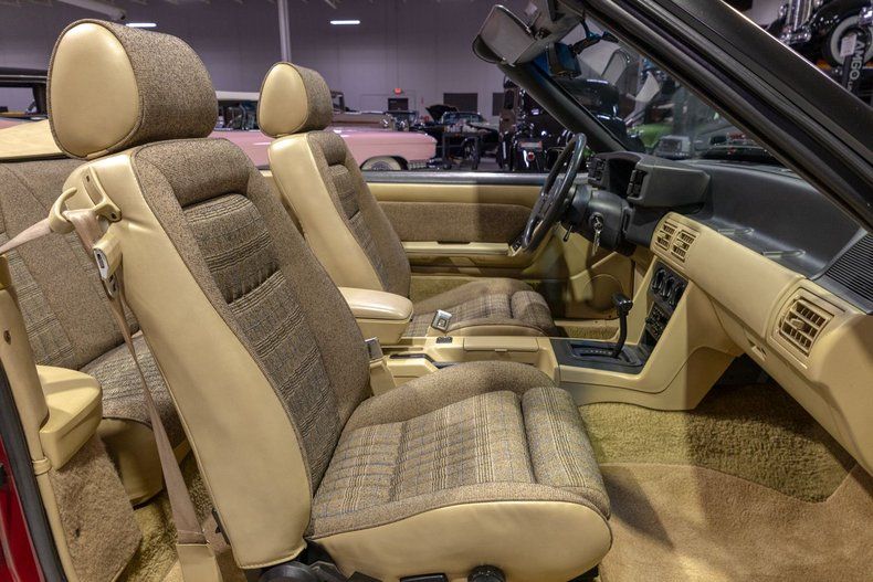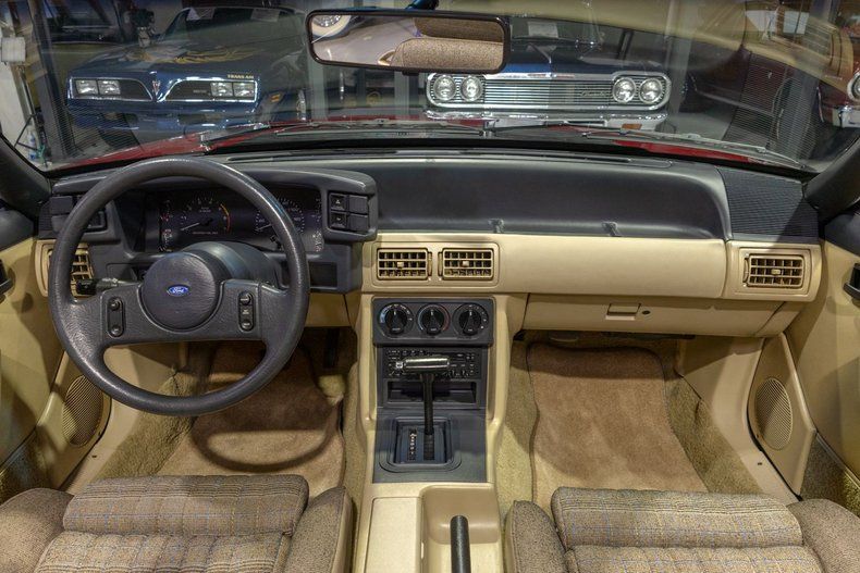 This 1989 Ford Mustang LX 5.0L Convertible is an outstanding, highly documented, low-mileage Foxbody Mustang with great options and a superb look! Few American performance cars experienced a resurgence as impactful as the Ford Mustang LX 5.0L Convertible. By the late 1980s, the Ford Mustang had firmly reestablished itself as a dominant force in the modern muscle car scene, thanks in large part to the legendary 5.0L High Output V8. Blending lightweight Fox-body styling with proven small-block performance, the Mustang LX 5.0 Convertible delivered an ideal combination of open-air cruising and street-ready power that continues to resonate with enthusiasts today. Introduced as a more understated alternative to the GT, the Mustang LX 5.0L offered the same potent drivetrain without the added ground effects and visual extras. This "sleeper" appeal made the LX especially popular among performance-minded buyers who valued speed and simplicity. In convertible form, the LX 5.0 became an even more compelling package-offering the thrill of V8 performance paired with top-down driving enjoyment, all wrapped in one of the most recognizable American nameplates of all time. Under the hood, the 1989 Ford Mustang LX Convertible was powered by a 5.0-liter (302 cubic inch) High Output V8 engine, factory rated at 225 horsepower. Paired with either a 5-speed manual or automatic transmission, the 5.0 Mustang delivered strong acceleration and a driving experience that helped define the Fox-body era. Its relatively light weight and simple, durable mechanicals also made it a favorite among tuners and racers, further cementing its reputation as one of the most versatile performance cars of its time. Inside, the Mustang LX 5.0 Convertible offered a driver-focused cockpit with comfortable seating, straightforward controls, and available features that reflected late-1980s convenience. The power-operated convertible top added another layer of enjoyment, making this Mustang equally at home cruising scenic roads or making a statement at local car events. Today, the 1989 Ford Mustang LX 5.0 Convertible is widely regarded as one of the most collectible Fox-body Mustangs. Its clean styling, legendary 5.0L V8, and growing appreciation among collectors have elevated its status in the modern classic car market. Enthusiasts searching for a 1989 Mustang LX 5.0 for sale recognize the unique balance of performance, nostalgia, and investment potential that these cars represent. This particular example comes to us from a discerning collector with impressive paperwork including its original window stock. Under the hood on this '89 Mustang is a "High Performance" 5.0 Liter EFI "High Output" (HO) engine that was rated at 225 horsepower from the factory. The fuel injected 5.0L V8 is backed by an optional 4-Speed Automatic Overdrive transmission that makes this Foxbody convertible an easy car for anybody to enjoy. Exhaust exits the HO 302 V8 out through a pair of tailpipes producing a terrific sound. This Mustang 5.0 LX is absolutely loaded with features! With rack and pinion power steering, this '89 Ford Mustang is easy to maneuver in and out of a tight parking space at your local cars and coffee event or car show. Power front disc brakes are another welcome feature on this 80s-era Mustang since it makes bringing this convertible to a complete stop much easier and predictable. You'll also be able to keep the rubber to the pavement since the rear differential is equipped with Traction-Lock. The drive in this 1989 Mustang LX is also quite enjoyable since it comes equipped with the special Handling Suspension including a Quadra Shock setup in the rear. Riding on a set of 215/65R15 radials mounted on cast aluminum wheels, this '89 LX 5.0L has a classic look and fantastic ride. The Sand Beige vinyl power convertible top is in fantastic condition and it's easily raised and lowered with the push of a button. Additionally, when the top is in the lowered position (as it should be 99% of the time), it tucks neatly below a matching convertible top boot that provides a much cleaner, streamlined look. The exterior of this Foxbody is correctly finished in Cabernet Red paint, just how it came back in 1989 when it rolled off the Dearborn production line. The interior of this 1989 Ford Mustang LX 5.0L Convertible is absolutely stunning! The front articulated Sport bucket seats as well as the rear seats look to be in great shape and they are correctly upholstered in Sand Beige fabric. The matching door panels, carpeting and floor mats, padded dash, and steering wheel are all in great shape as well, impressively retaining their stock appearance. Like the drivetrain, the interior is also absolutely loaded with creature comforts! All four power windows go up and down with the simple push of a button and you can even unlock the doors with the power door locks. On extended cruises, you can get extra comfortable thanks to the power adjustable lumbar support and a tilt steering wheel. This 1989 Foxbody Mustang also came equipped from the factory with the optional Special Value Group of accessories. First, you'll be able to stay cool even on the hottest summer days thanks to the factory air conditioning and you can stay warm on a cool summer evening with the heater and defroster. Second, longer driving is made much more enjoyable with "Speed Control" Cruise Control complete with steering wheel mounted controls. Third, you'll be able to listen to all of your 80s and 90s throwback tunes on the AM/FM/Cassette Stereo system and Premium Sound System. The instrument cluster remains in its stock configuration and includes a 140 MPH speedometer, 7,000 RPM tachometer, battery gauge, temperature gauge, oil pressure gauge, and fuel gauge. Whether you're buying your very first classic car or you're adding to your existing stable of Ponies, this 1989 Ford Mustang LX 5.0L Convertible would make an excellent choice. Give Ellingson's a call today at 763-428-7337!