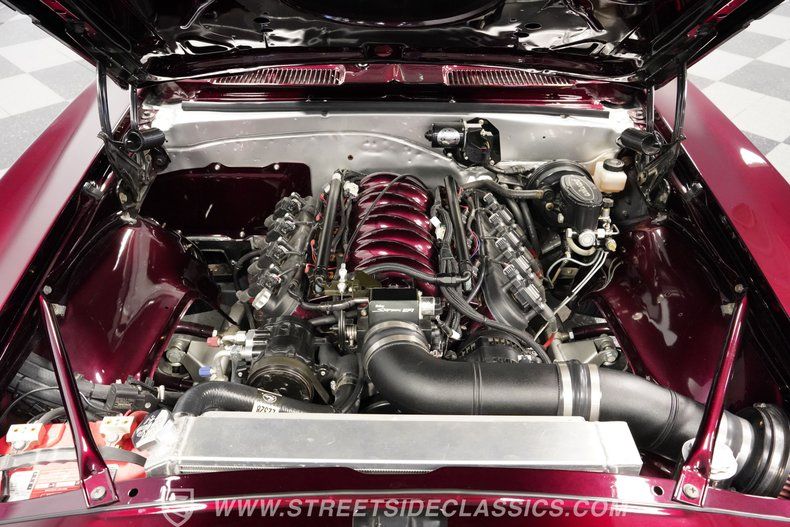 Step inside and you will find a beautifully crafted custom interior that effortlessly blends classic design with contemporary comfort. TMI bucket seats with burgundy stitching provide excellent support and a modern flair. The dash and door panels look brand new, Dakota digital gauges line the cluster, and a Kenwood aftermarket radio deliver both style and function. Clean carpets and LED accent lighting beneath the dash complete a cabin that is as inviting as it is striking.